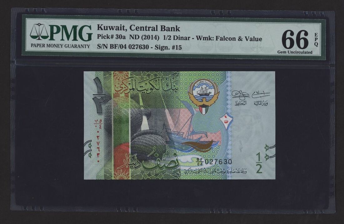 (x) Central Bank of Kuwait, [5 notes] Group from the 2014 Sixth Issues, 1/2 Dinar, ND (2014), serial number BF/04 027630,