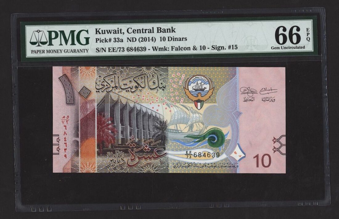 10 Dinars, ND (2014), serial number EE/73 684639,