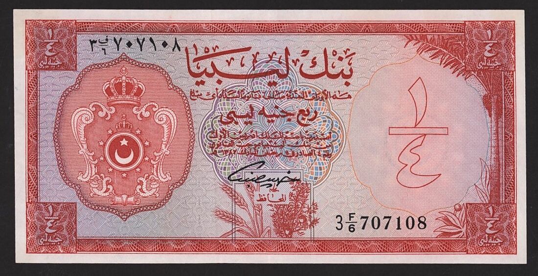 Bank of Libya, [2 notes] 1/4 Pound, 1963, two 1/4 Pound notes, one of a reduced size (Pick 28)