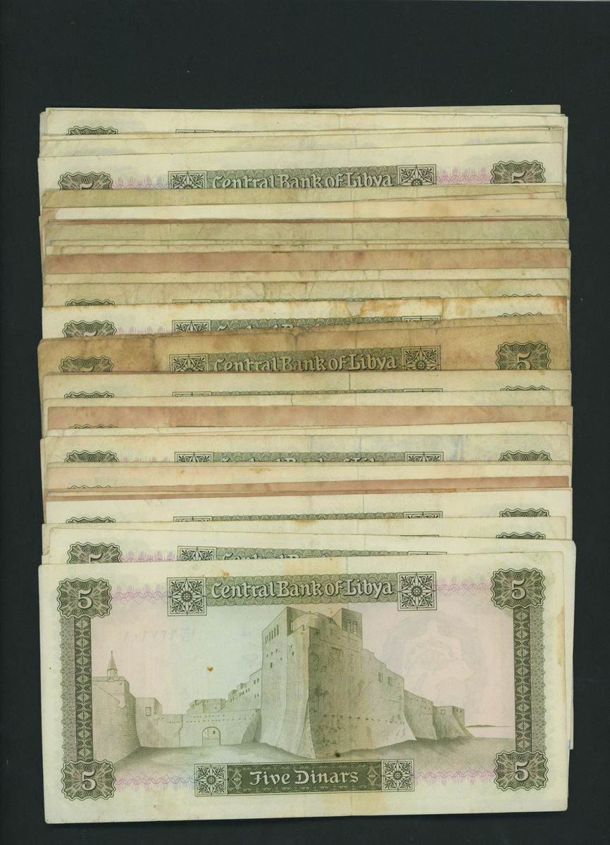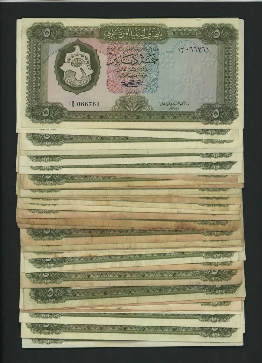 Central Bank of Libya, [50 notes] 5 Dinars, ND (1971-2), serial number range, (Pick 36, BNB 504), fair to fine, stains and graffiti (50 notes)