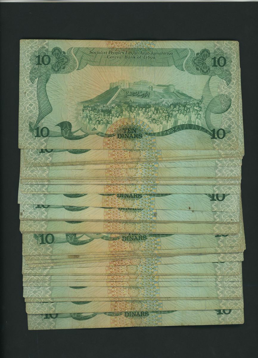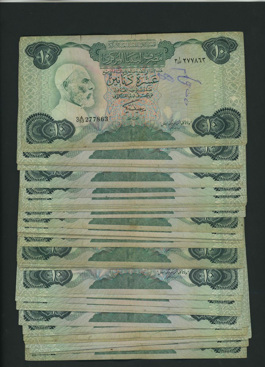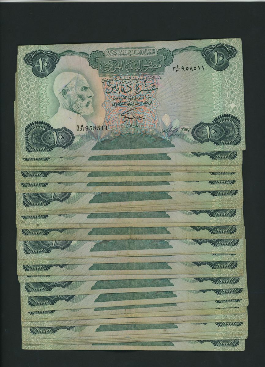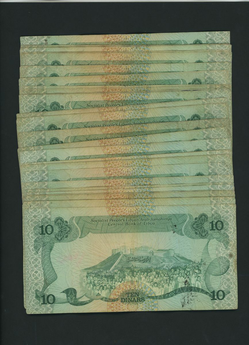 Central Bank of Libya, [100 notes] 10 Dinars, ND (1984), serial number range, (Pick 51, BNB 515), fine to very fine, graffiti, foxing, stains and toning (100 notes)