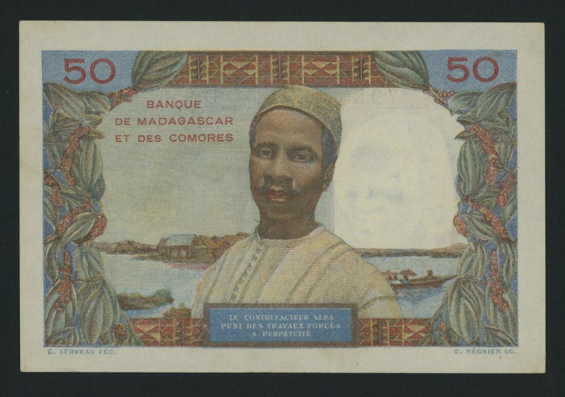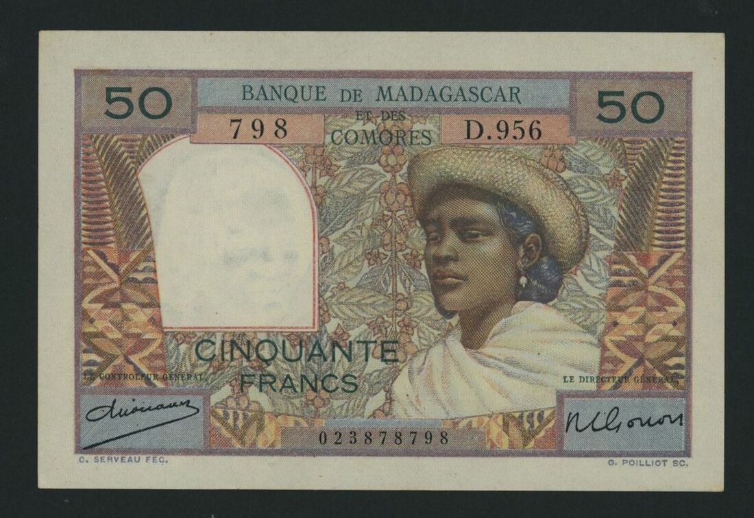Madagascar, 50 Francs, ND (1950-51), serial number D.956 798, (Pick 45a, BNB 101a), good extremely fine