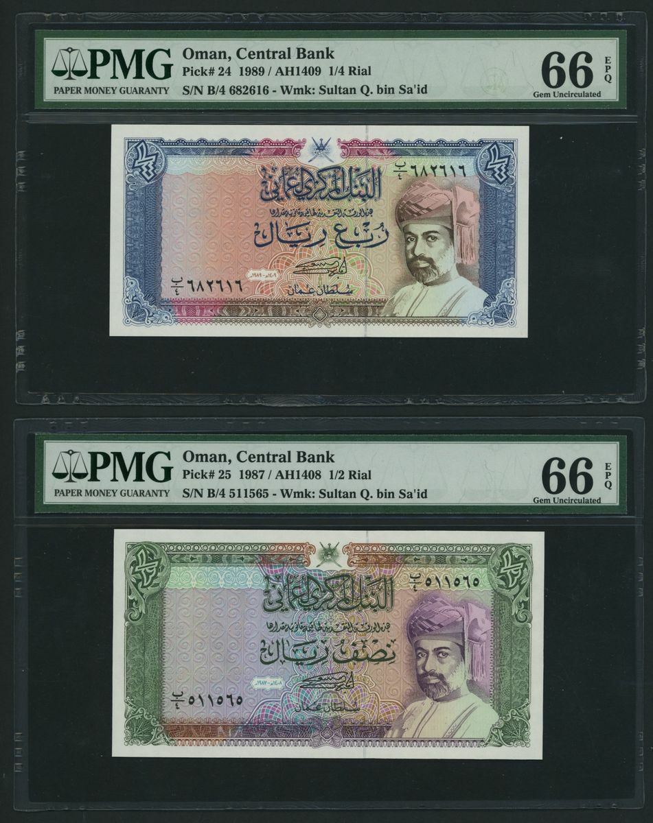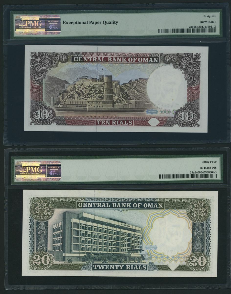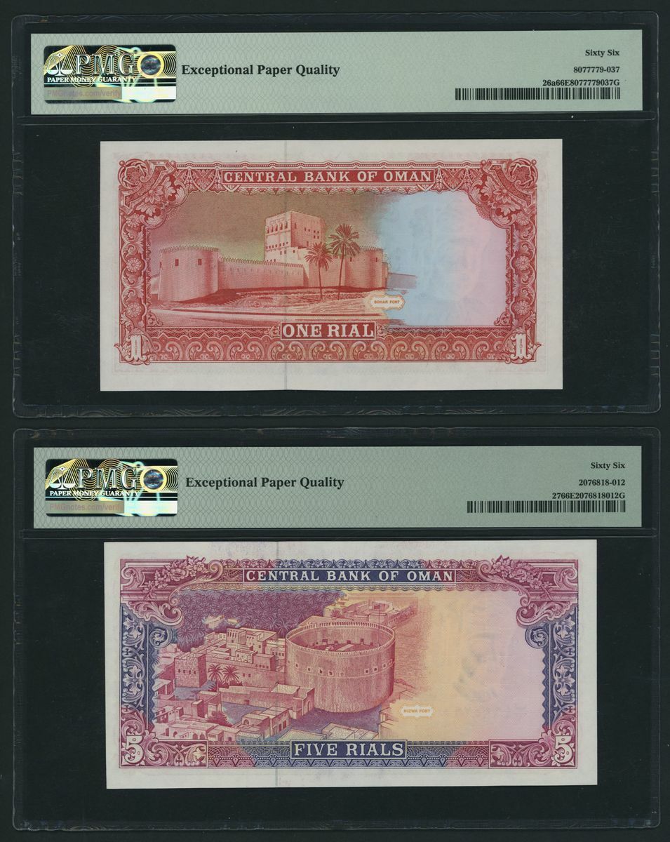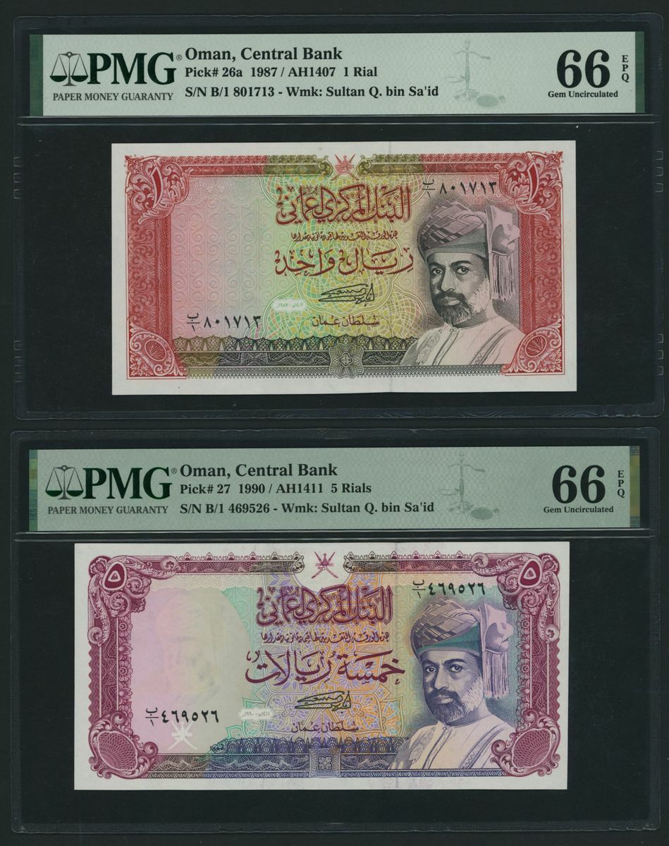 (x) Central Bank of Oman, [9 notes] Complete set of the 1985-1994 Issues, 100 Baisa, ND (1987), serial number B/1 250415,