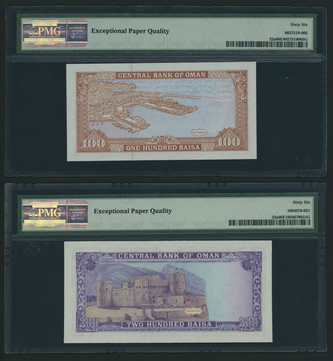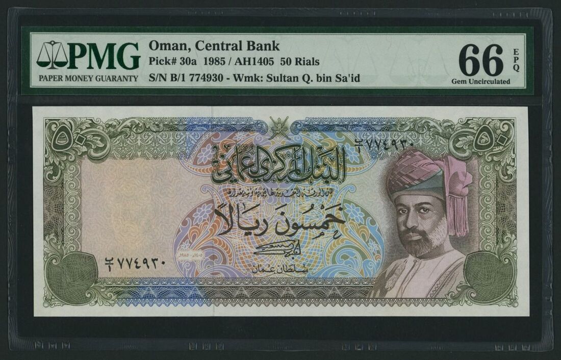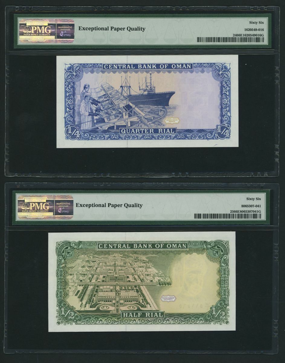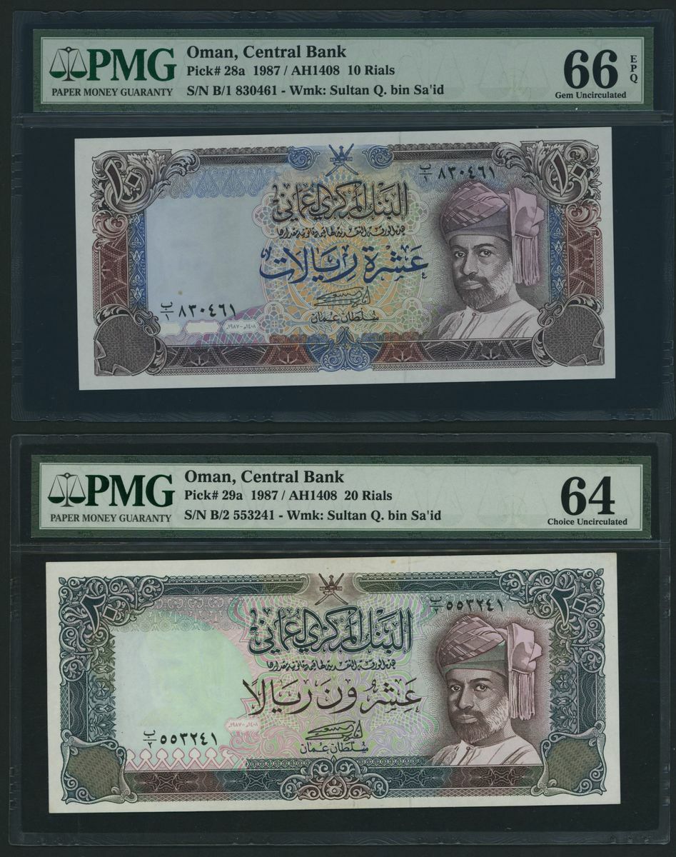 (x) Central Bank of Oman, [9 notes] Complete set of the 1985-1994 Issues, 100 Baisa, ND (1987), serial number B/1 250415,