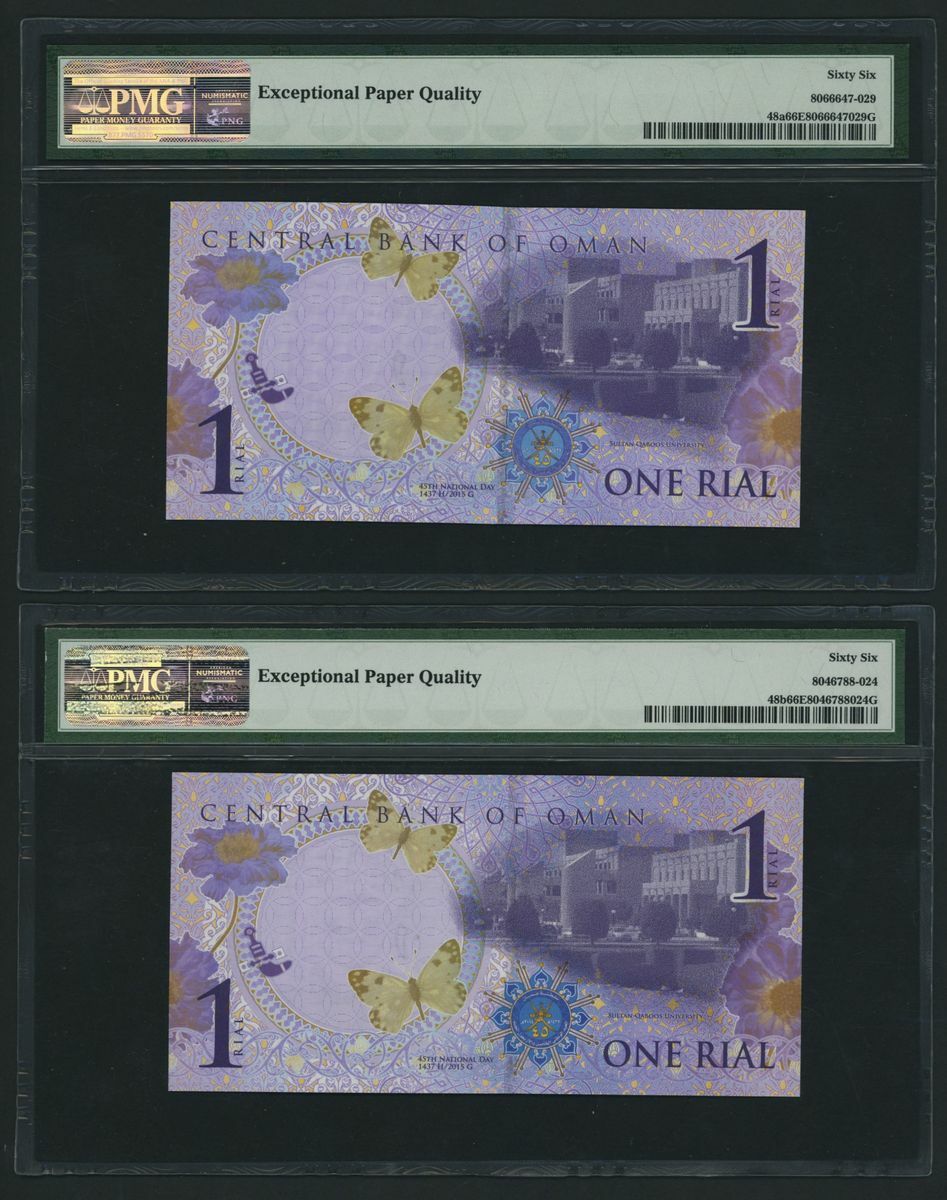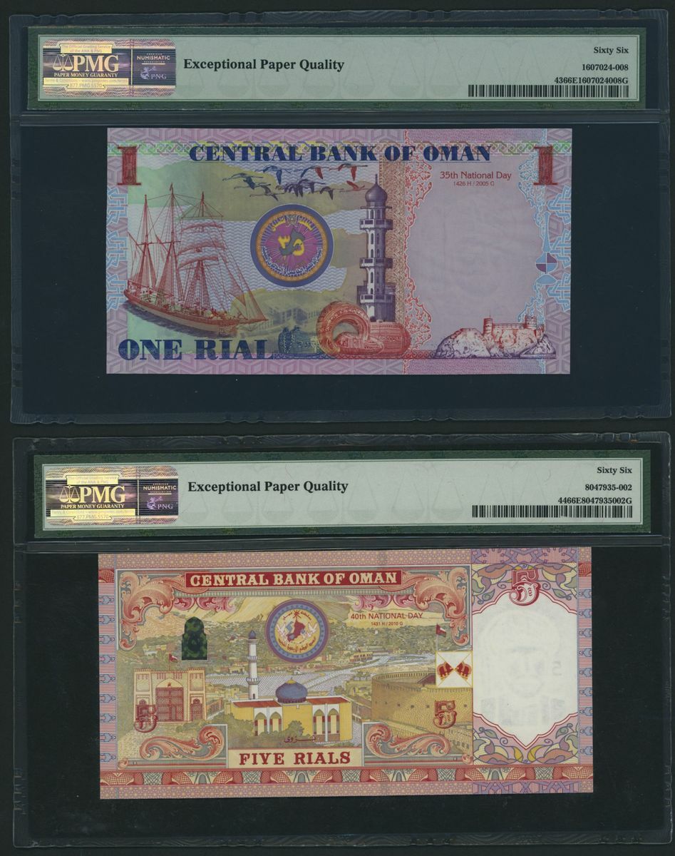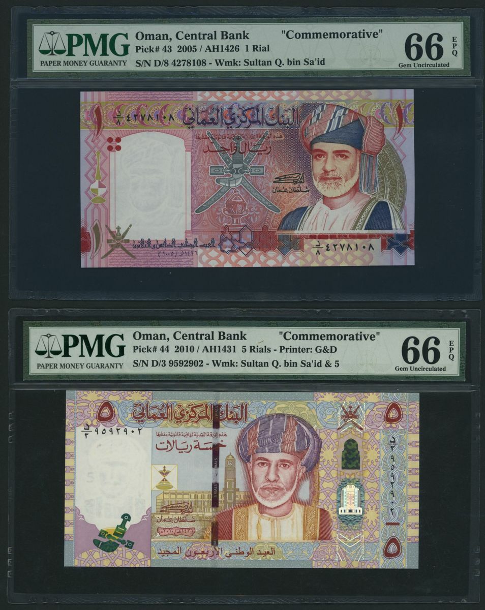 (x) Central Bank of Oman, [9 notes] Group of Commemorative Banknotes, 1 Rial, 2005, serial number D/8 4278108;