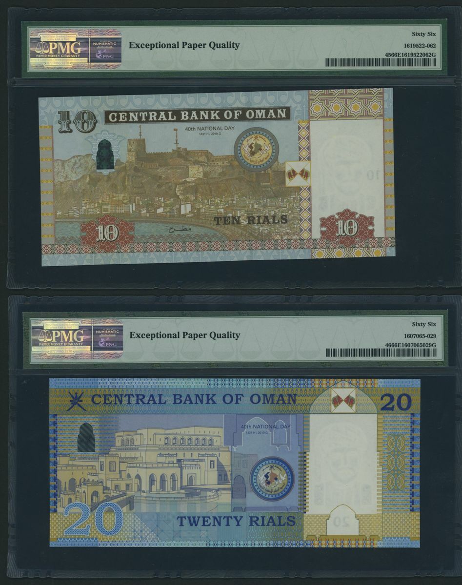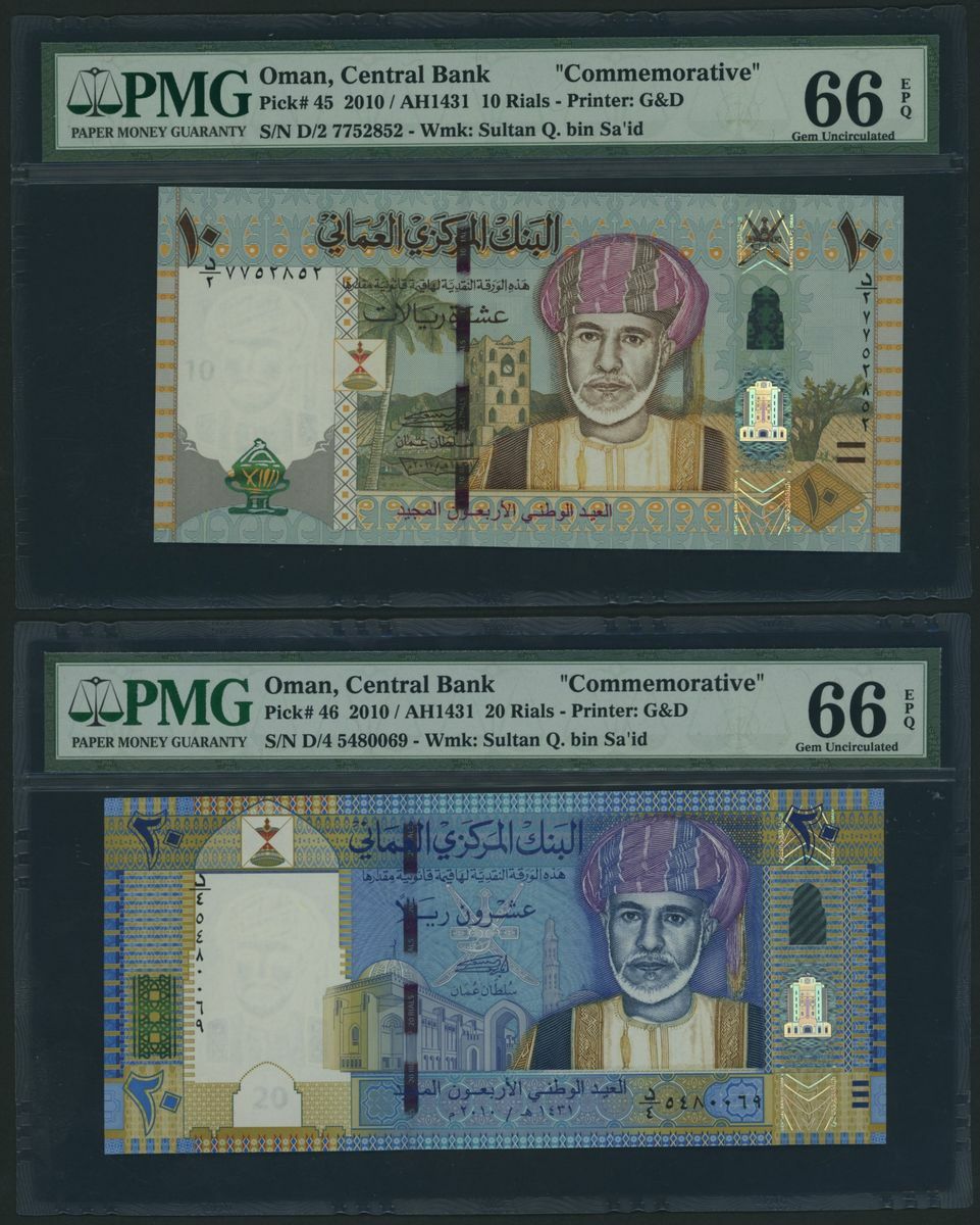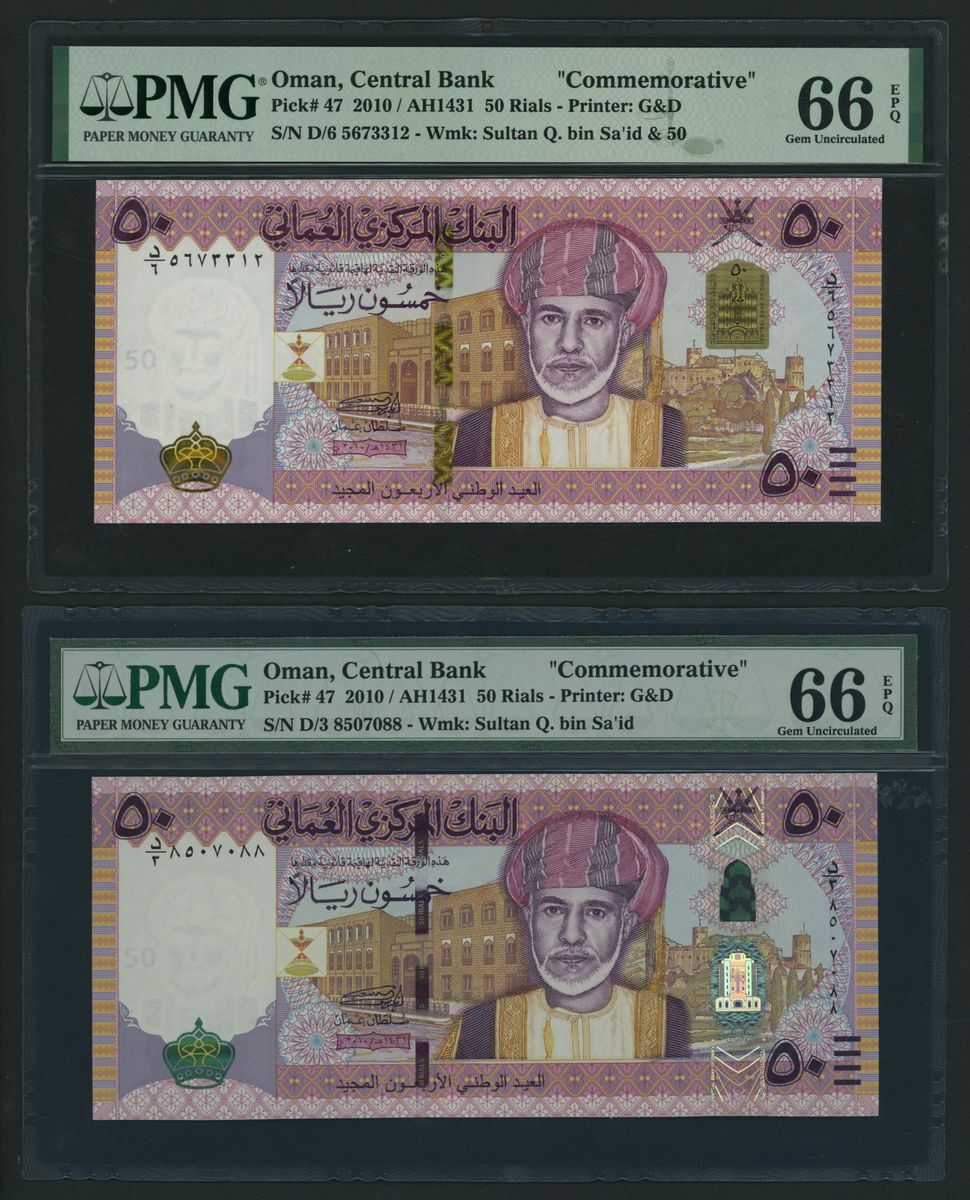 (x) Central Bank of Oman, [9 notes] Group of Commemorative Banknotes, 1 Rial, 2005, serial number D/8 4278108;