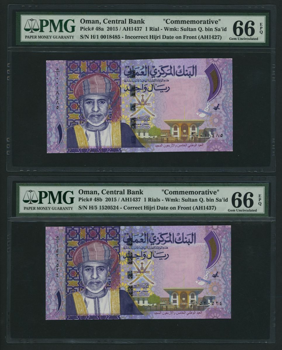 1 Rial, 2015, serial number H/1 0018485 Incorrect Hijri Date;
