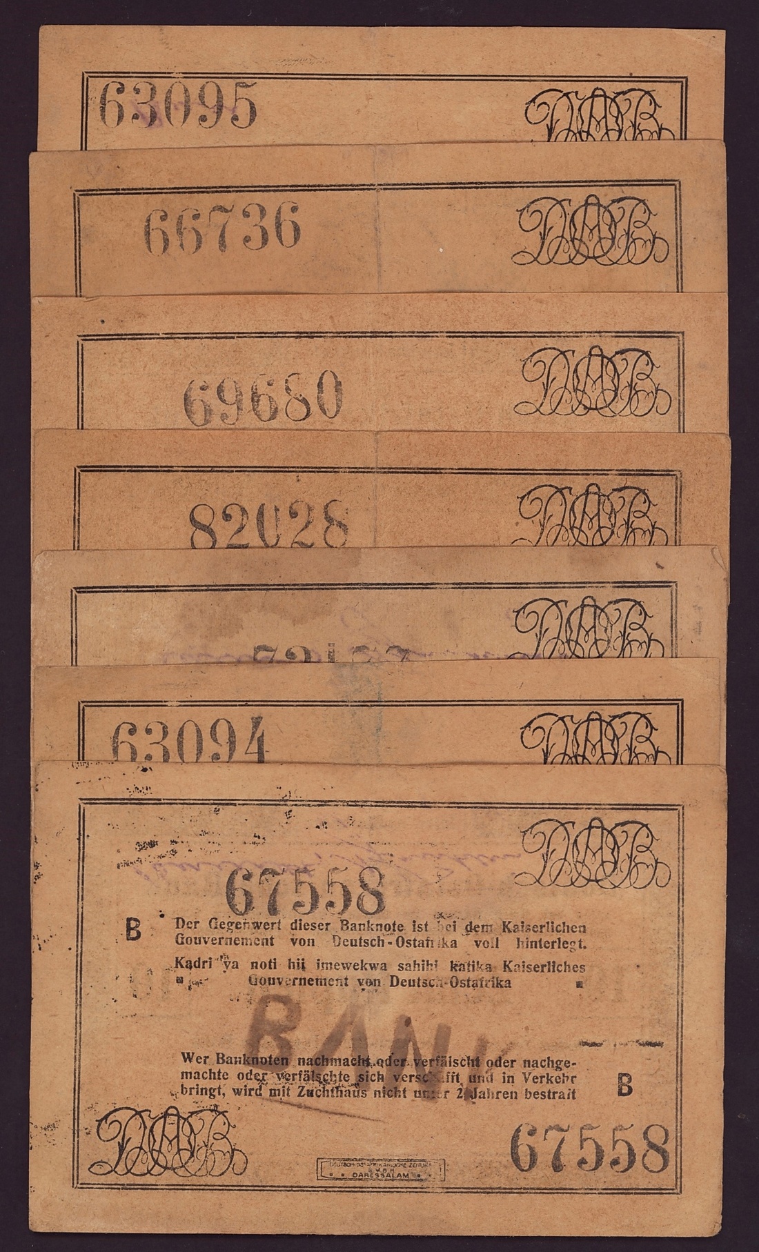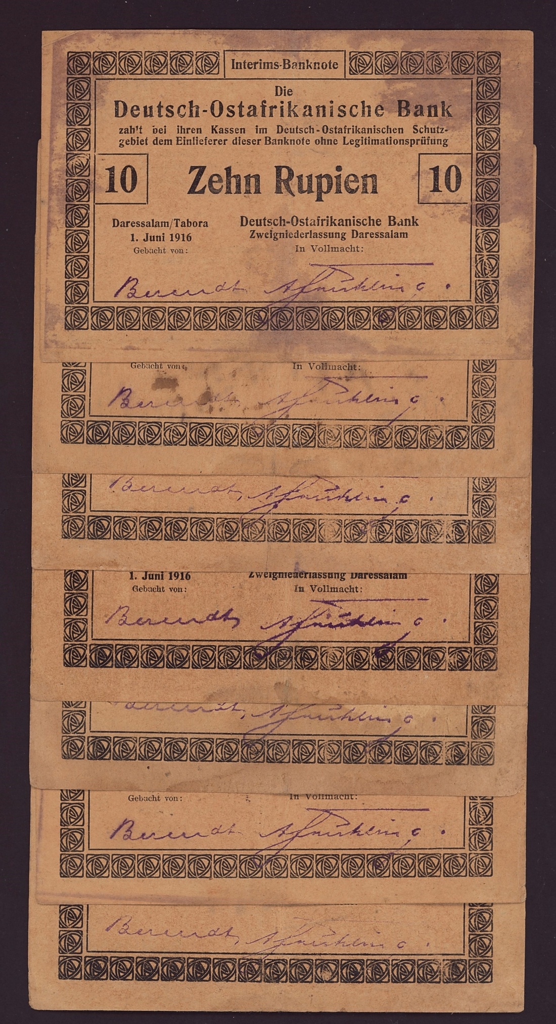Deutsch-Ostafrikanische Bank, German East Africa, [7 notes] group of 10 Rupien, 1st June 1916, (Pick 41), corners rounded, some stains, otherwise good extremely fine (7 notes)