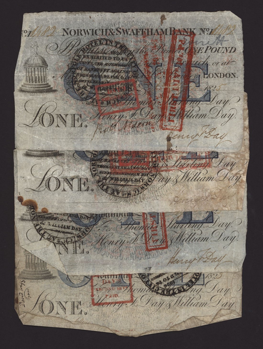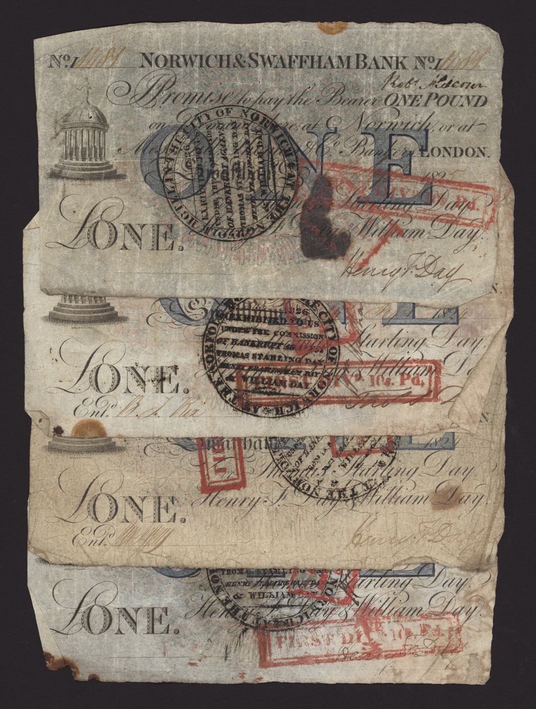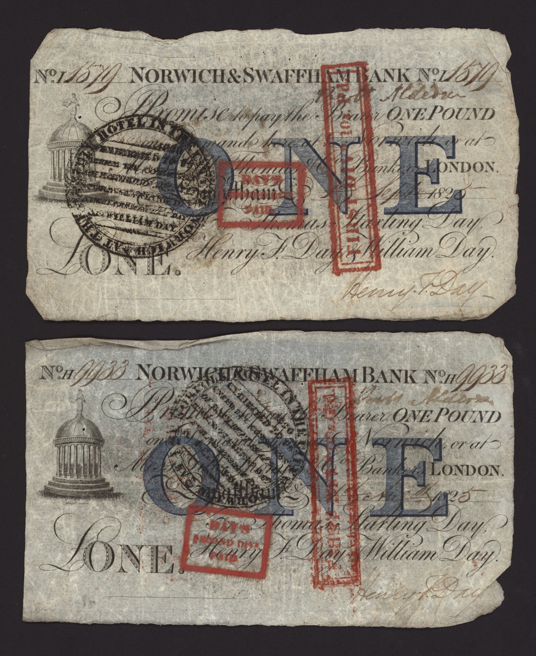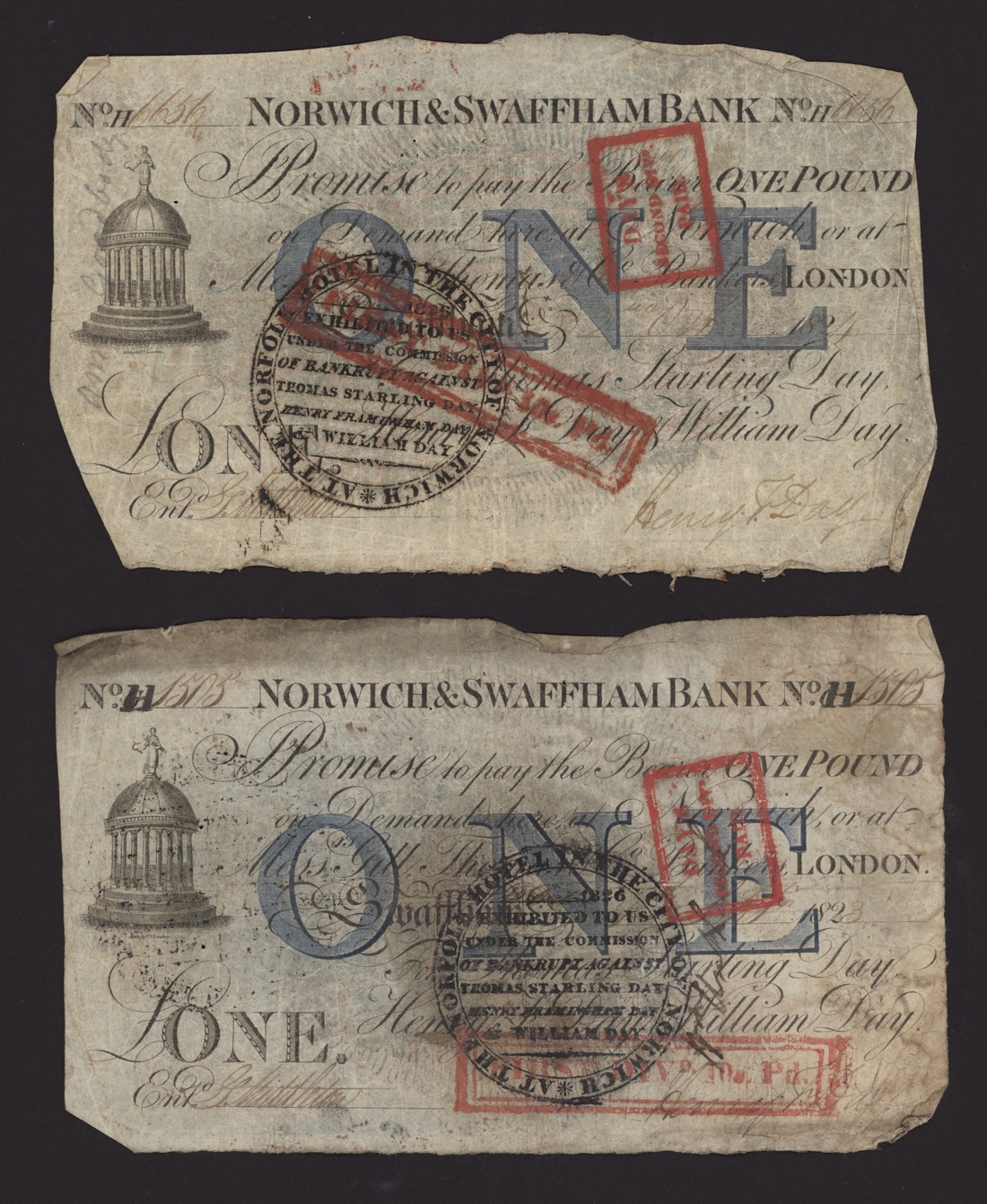 Norwich and Swaffham Bank, [12 notes] £1, circa 1825, (Outing 1609i), good to very good, many pinholes, ink burns and discolouration (12 notes)