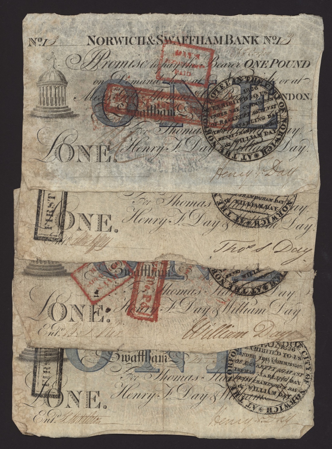 Norwich and Swaffham Bank, [12 notes] £1, circa 1825, (Outing 1609i), good to very good, many pinholes (12 notes)