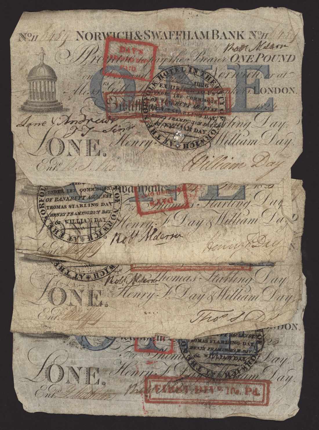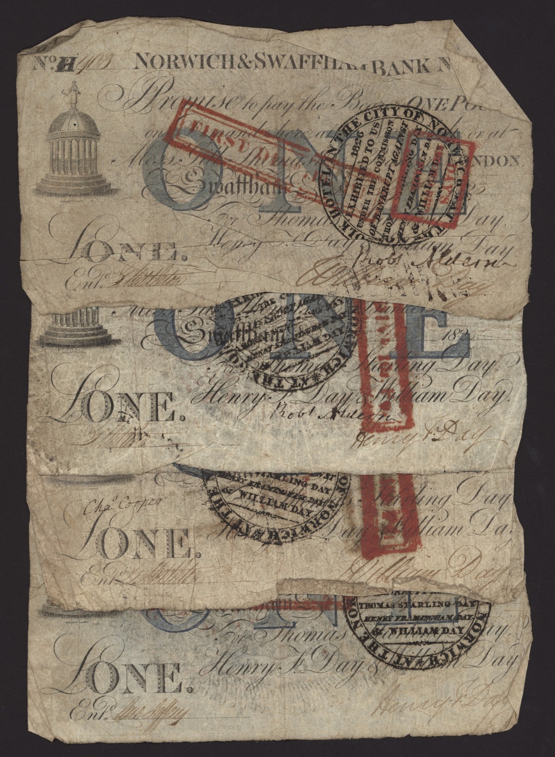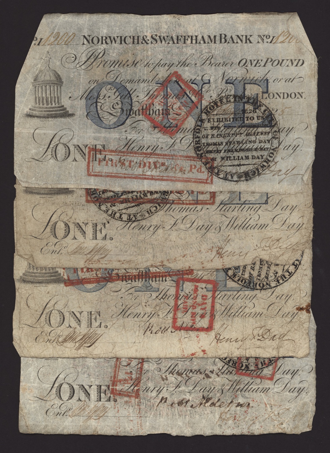 Norwich and Swaffham Bank, [12 notes] £1, circa 1825, (Outing 1609i), good to very good, many pinholes, ink and discolouration (12 notes)