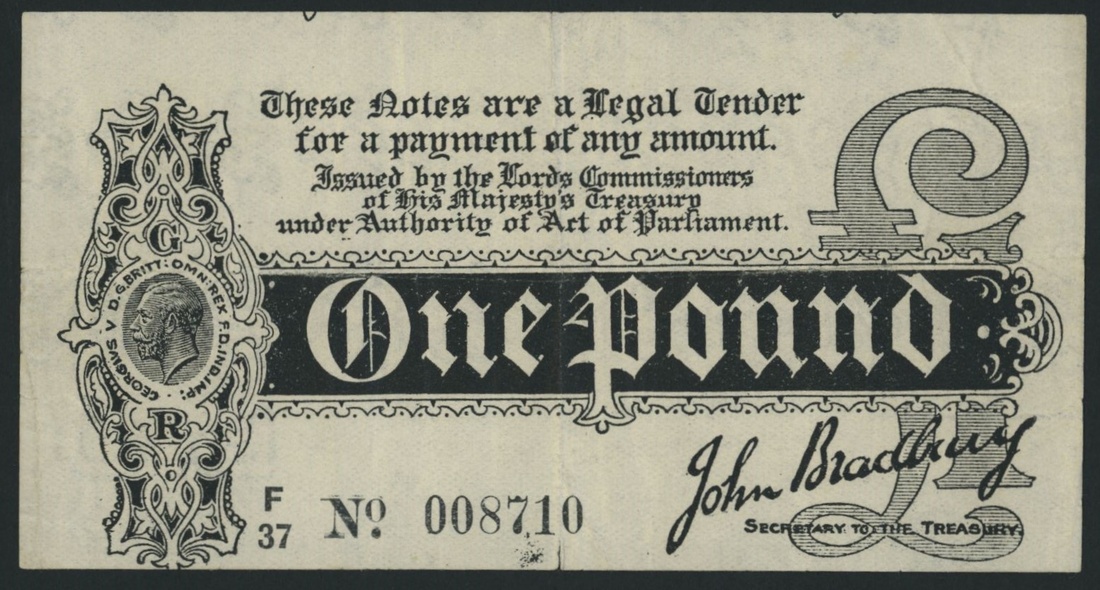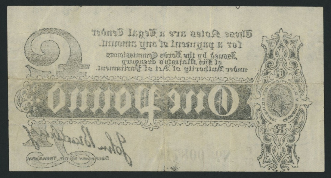 Treasury, Great Britain, £1, ND (1914), serial number F/37 008710, Bradbury signature, (Pick 347, EPM T3 type 3), solid very good, central splits on lower and upper margins, discolouration, centring is poor