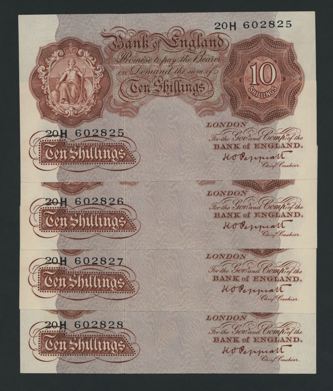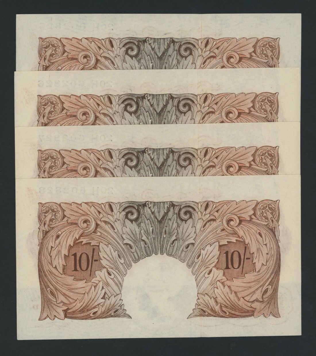 Bank of England, [4 notes] 10 Shillings, ND (1948-49), K. O. Peppiatt signature, consecutive serial numbers 20H 602825-8
