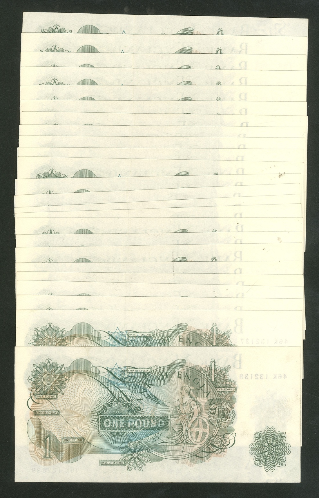 Bank of England, [24 notes] £1, London, ND (1960-1), L. K. O'Brien signature, consecutive serial numbers 46K 132115-38, (Pick 374a, EPM B282), extremely fine to about uncirculated, stains on some notes (24 notes)