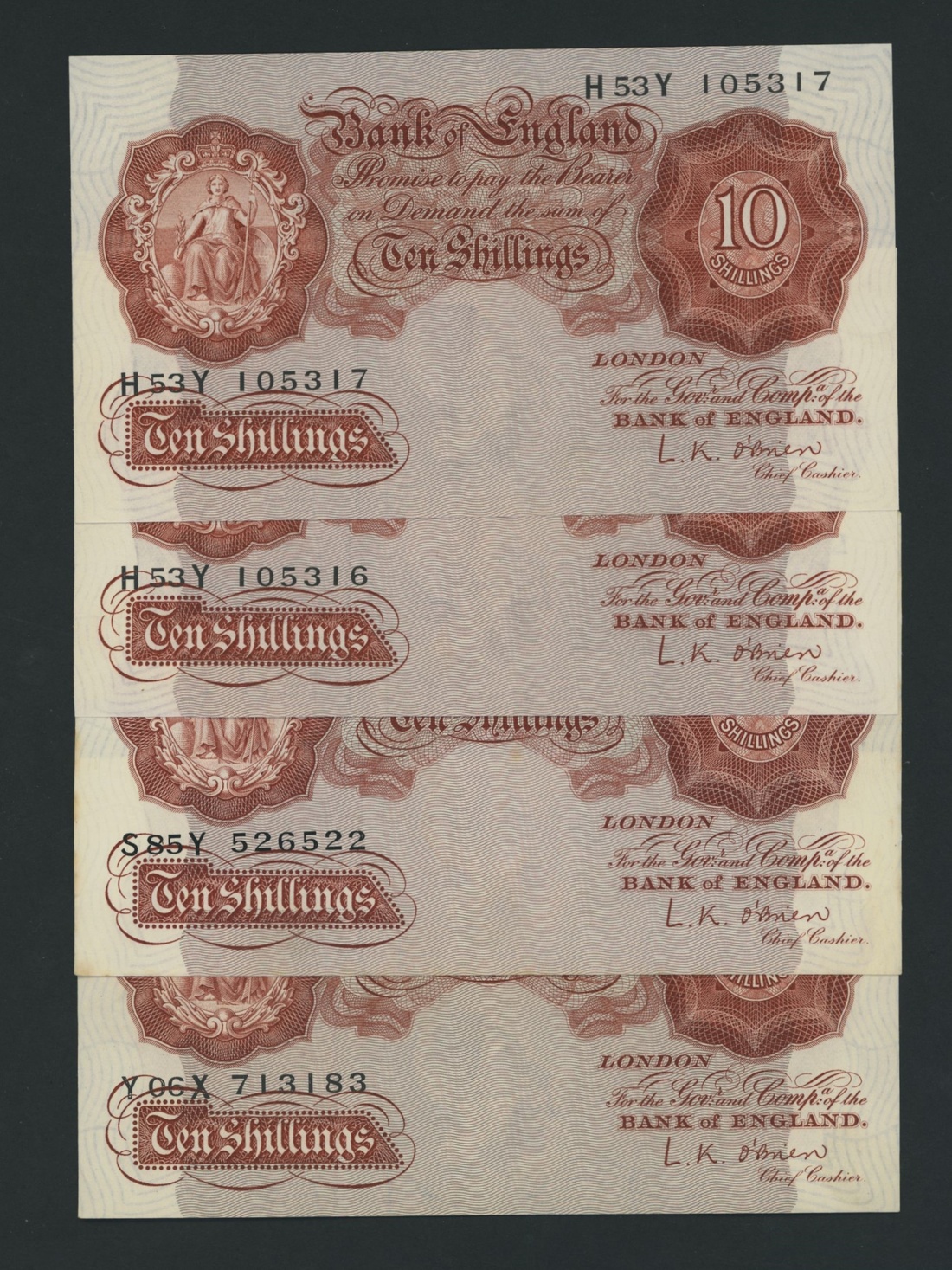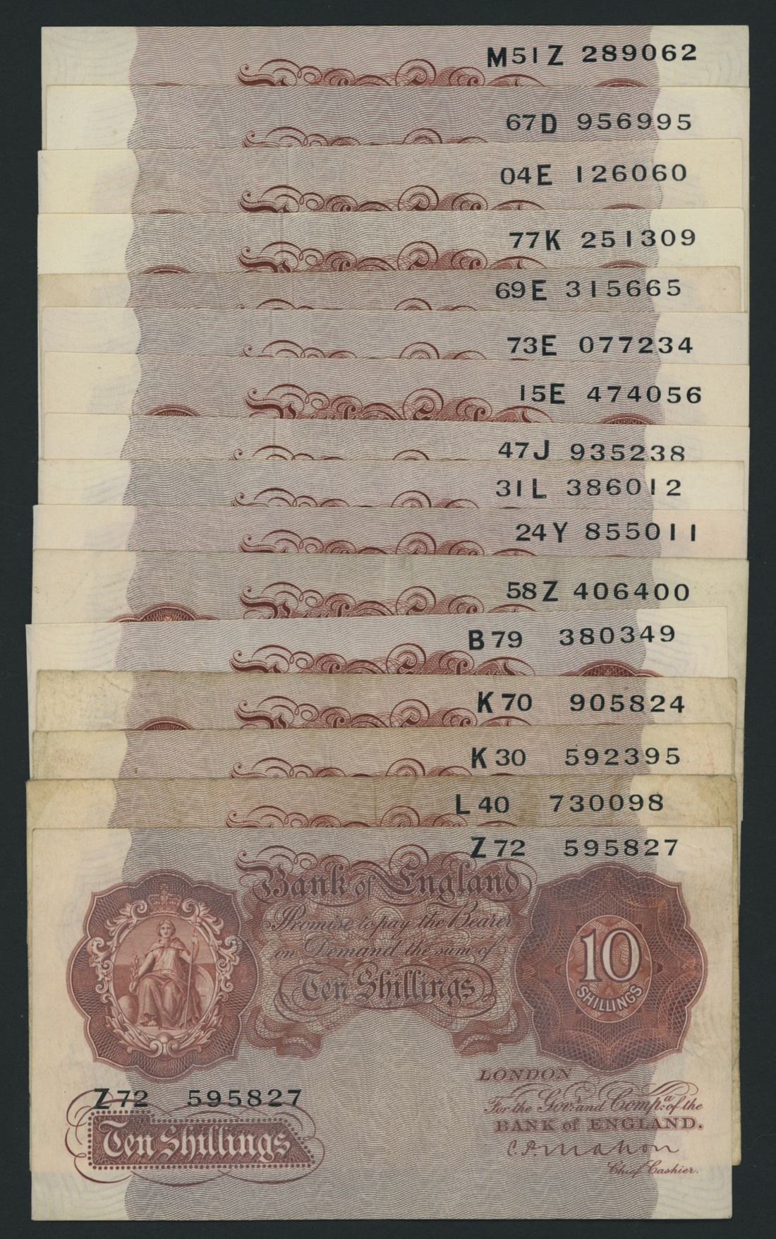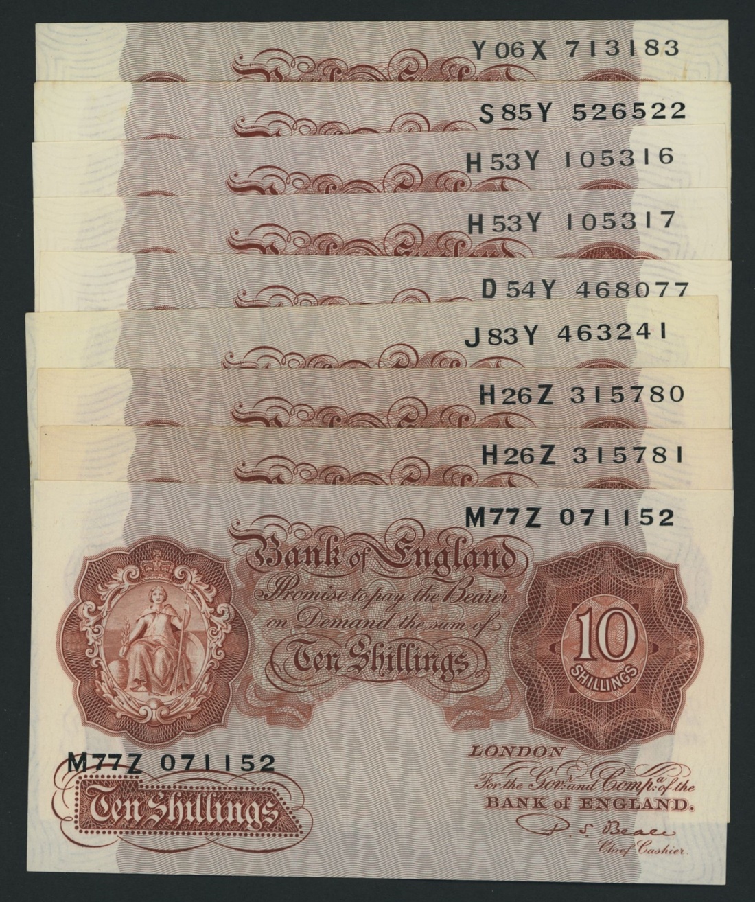 Bank of England, [25 notes] 10 Shillings, 1928-1960,