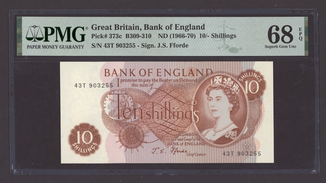 10/- Shillings, ND (1966-70), serial number 43T 903255,