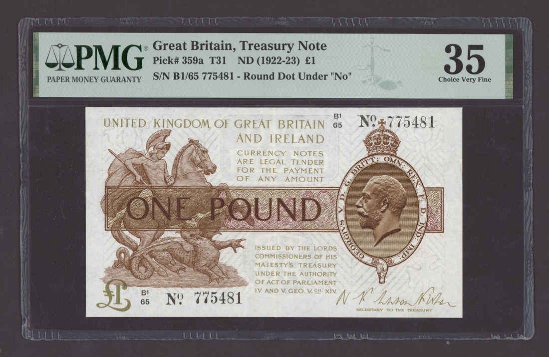 £1, ND (1922-23), serial number B1/65 775481, Round Dot Under "Nº "