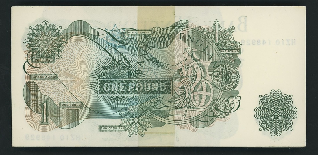 Bank of England, [80 notes] [LAST SERIES] £1, London, ND (1970-77), consecutive serial numbers NZ10 148850-929, J. B. Page signature, (Pick 374g, EPM B322), about uncirculated to uncirculated, held within a transparent money band (80 notes)