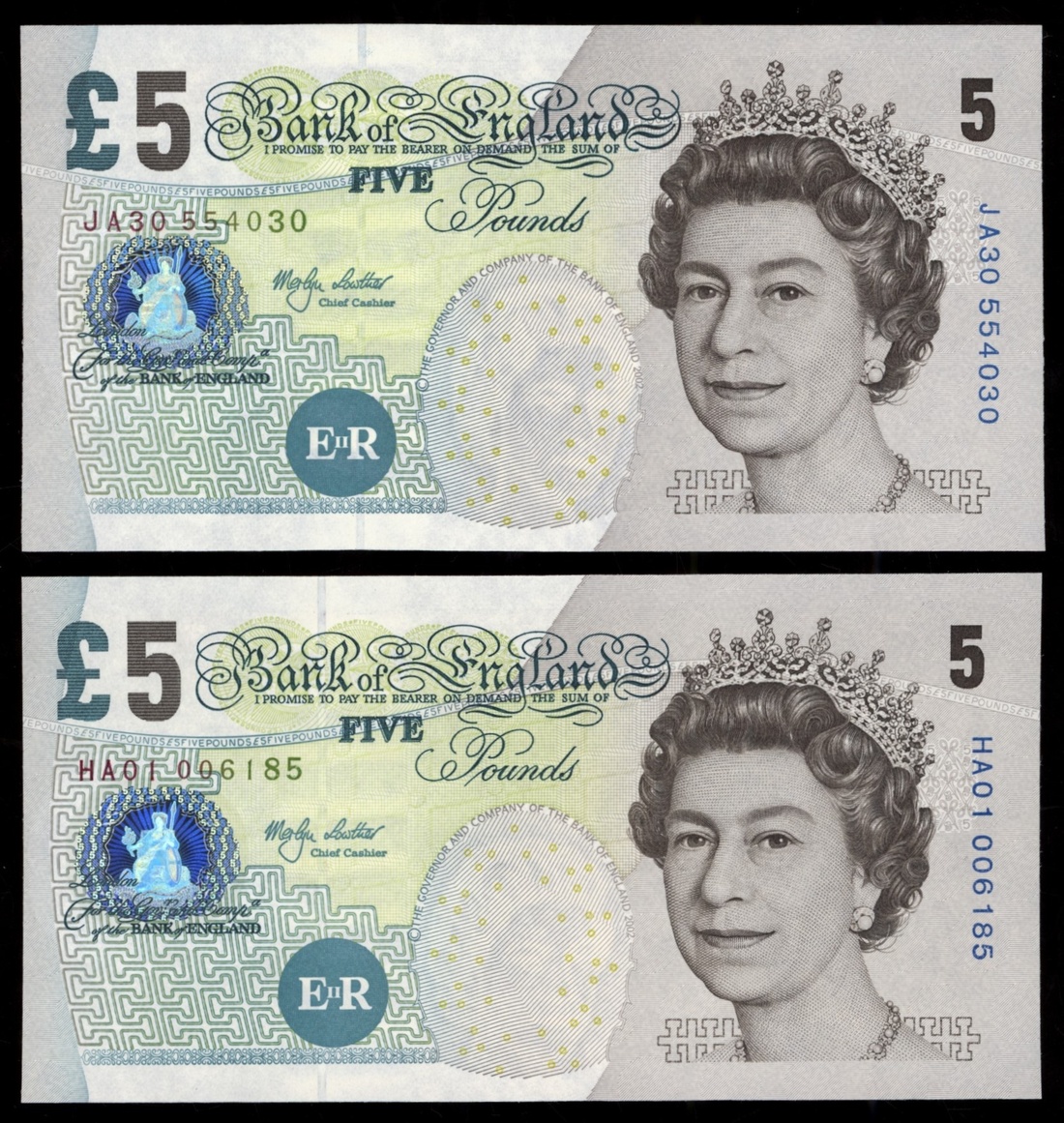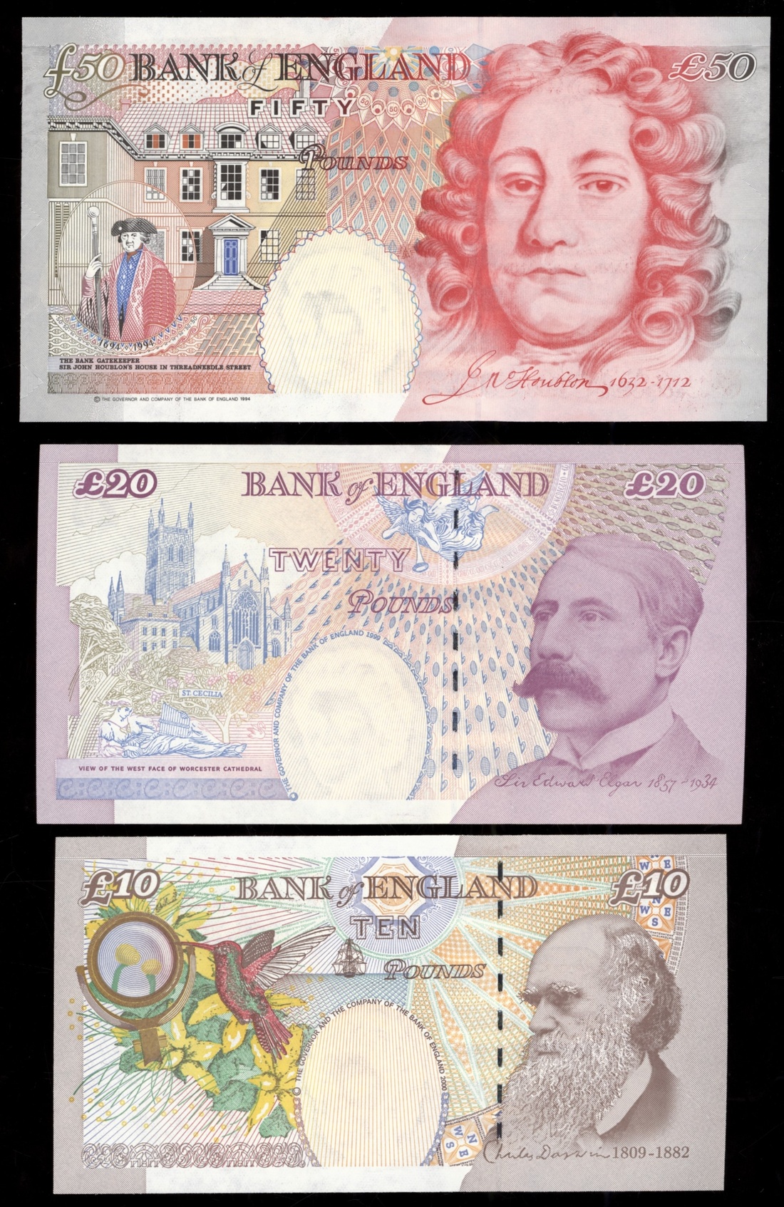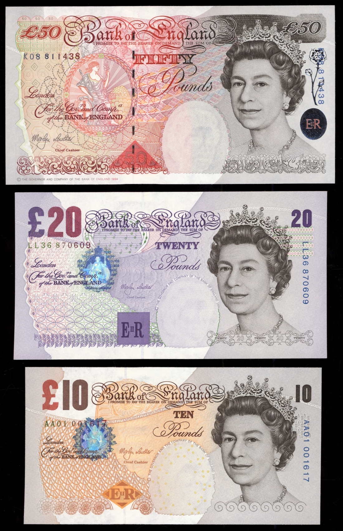 Bank of England, [5 notes] £5, £10, £20, £50, 1999-200, M. Lowther signature,