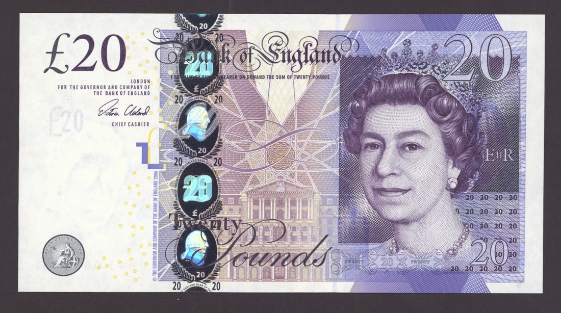 Bank of England, [First Run] £20, 2006 (ND 2015), serial number JH41 000045, V. Cleland signature, (EPM B412, Pick 392 for same design), uncirculated, low serial number