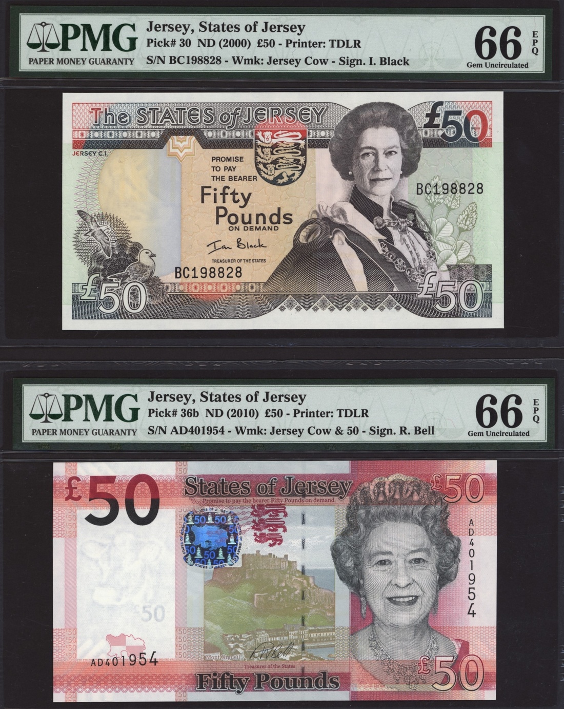 (x) States of Jersey, [2 notes] £50, 2000-2010,