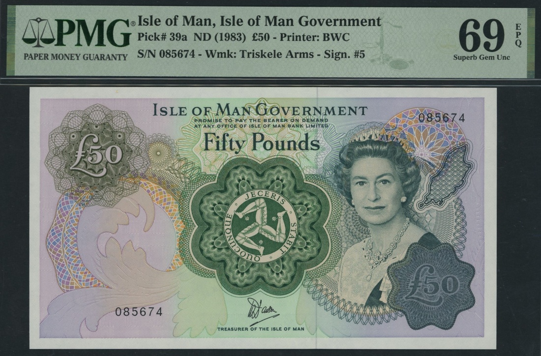 (x) Isle of Man Government, [Top Pop] £50, ND (1983), serial number 085674, (Pick 39a, BNB 113), in PMG holder 69 EPQ Superb Gem Uncirculated, single finest graded at PMG