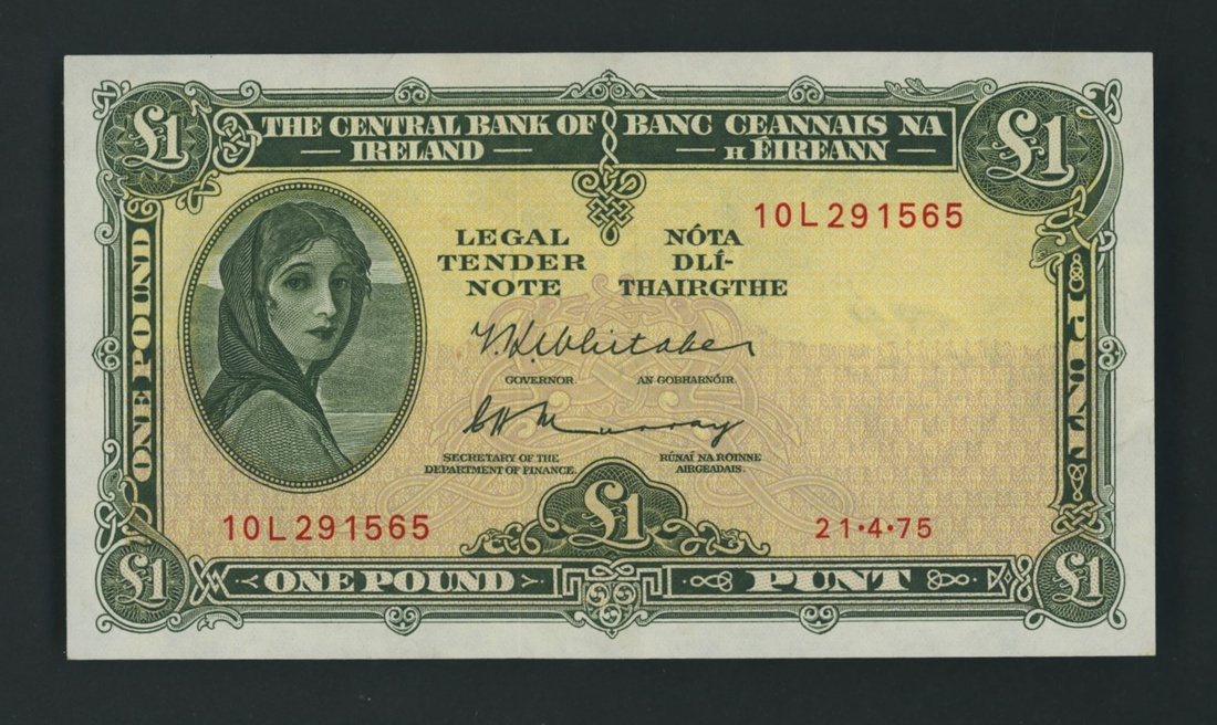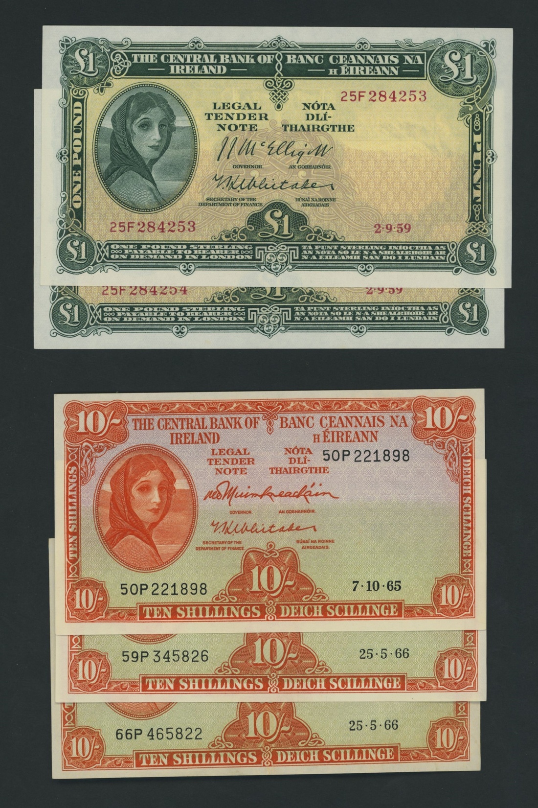 Central Bank, Republic of Ireland, [6 notes] 10 Shillings, £1, 1959-75, 10/- (3) 7th October 1965, serial number 50P 221898, 25th May 1966, serial numbers 59P 345826 and 66P 465822; £1 (3), 2nd September 1959, consecutive serial numbers 25F 284253-4 and 21st April 1975, serial number 10L 291565