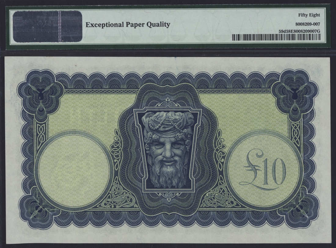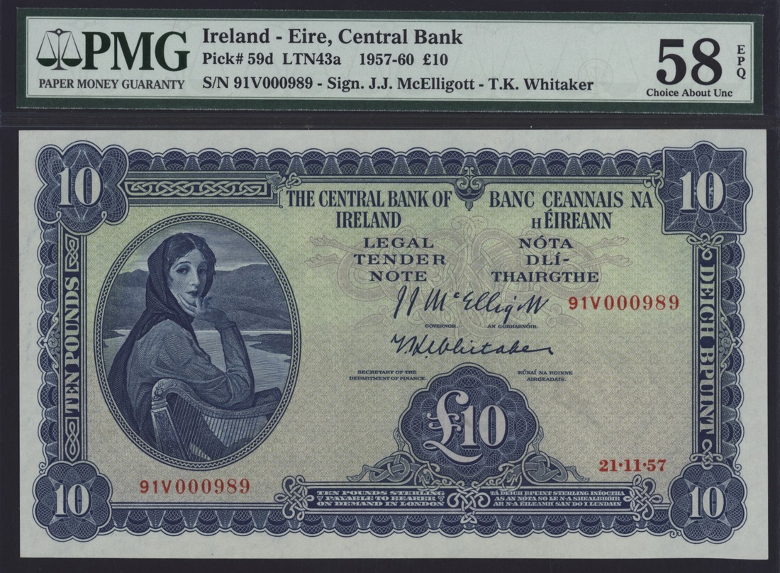 (x) Central Bank, Republic of Ireland, £10, 21st November 1957, serial number 91V000989, (Pick 59d, BNB B204g), in PMG holder 58 EPQ Choice About Uncirculated