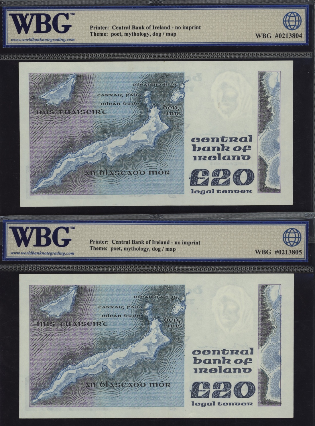 (x) Republic of Ireland, [2 notes] £20, 7th January 1980, serial numbers DBE 430033-4, (Pick 73a, BNB 218a), both in WBG holder 58 About Uncirculated Choice (2 notes)