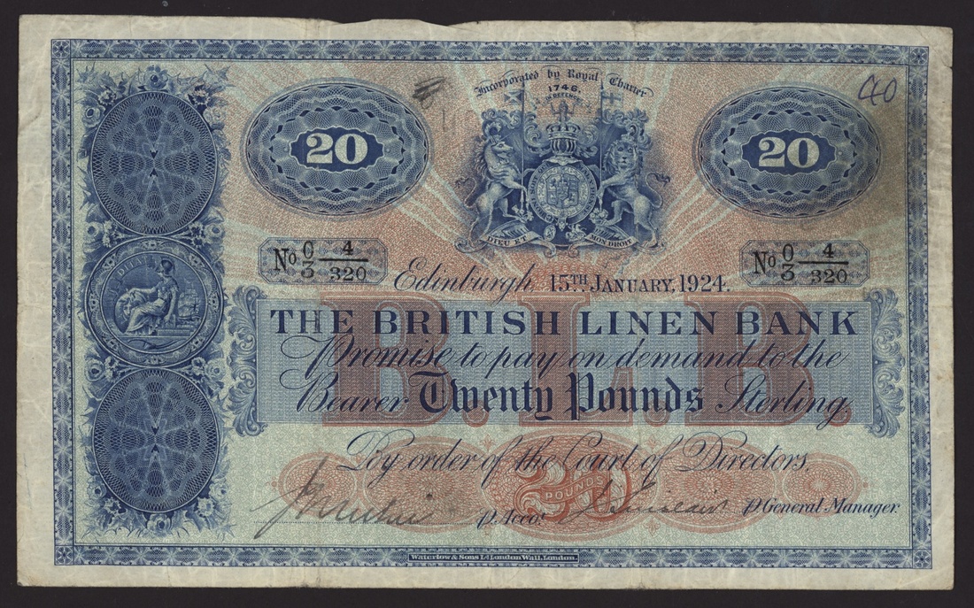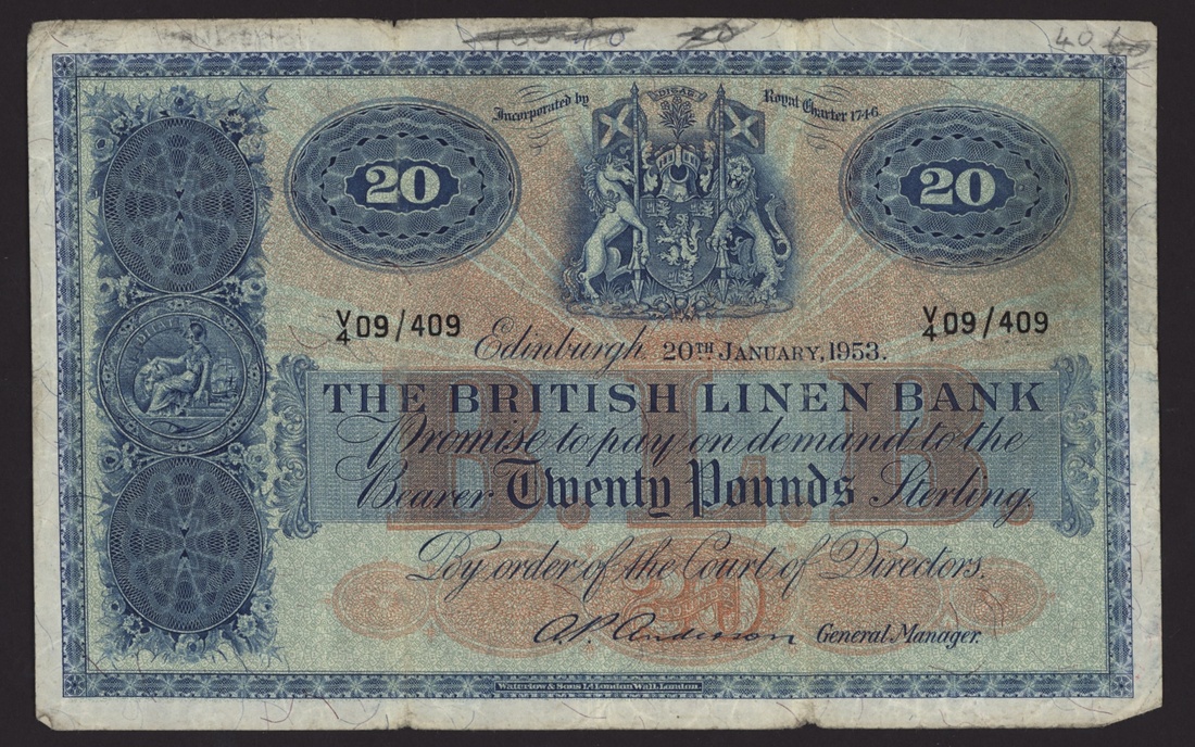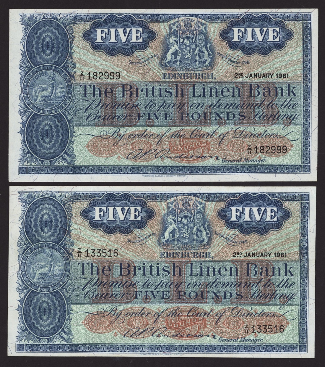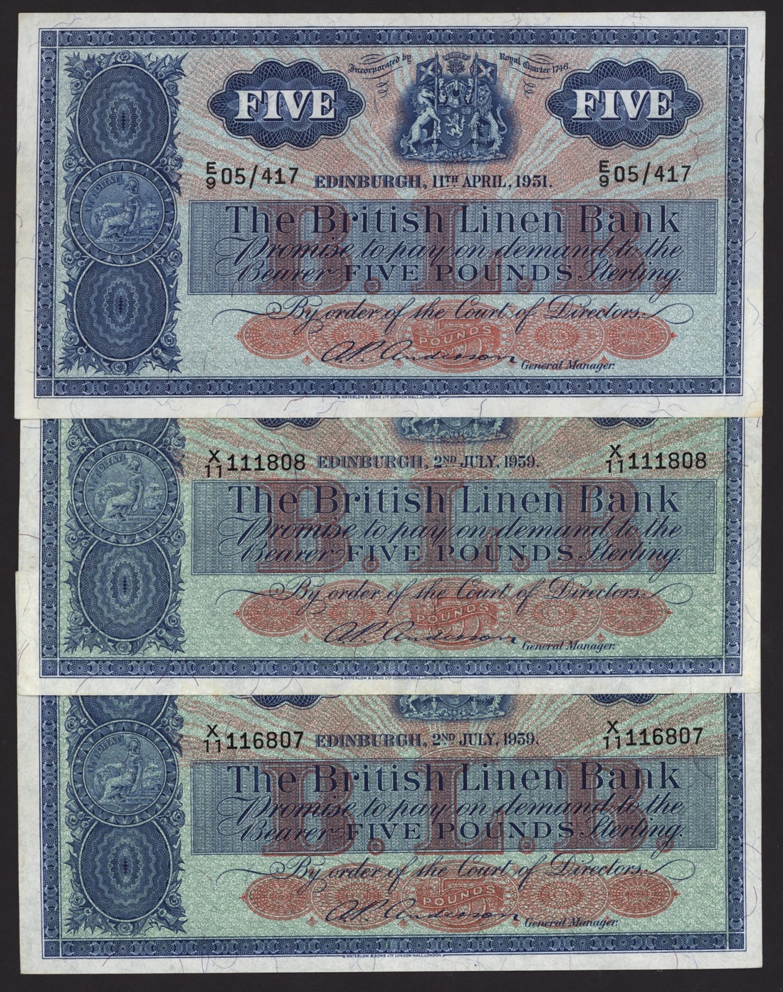 British Linen Bank, Scotland, [7 notes] £5, £20, Edinburgh, 1924-61, (Pick 159a, 159b, 161b, 163, BL 62, 68e, 67c, 67e, 72), fine to uncirculated, graffiti on two notes (7 notes)