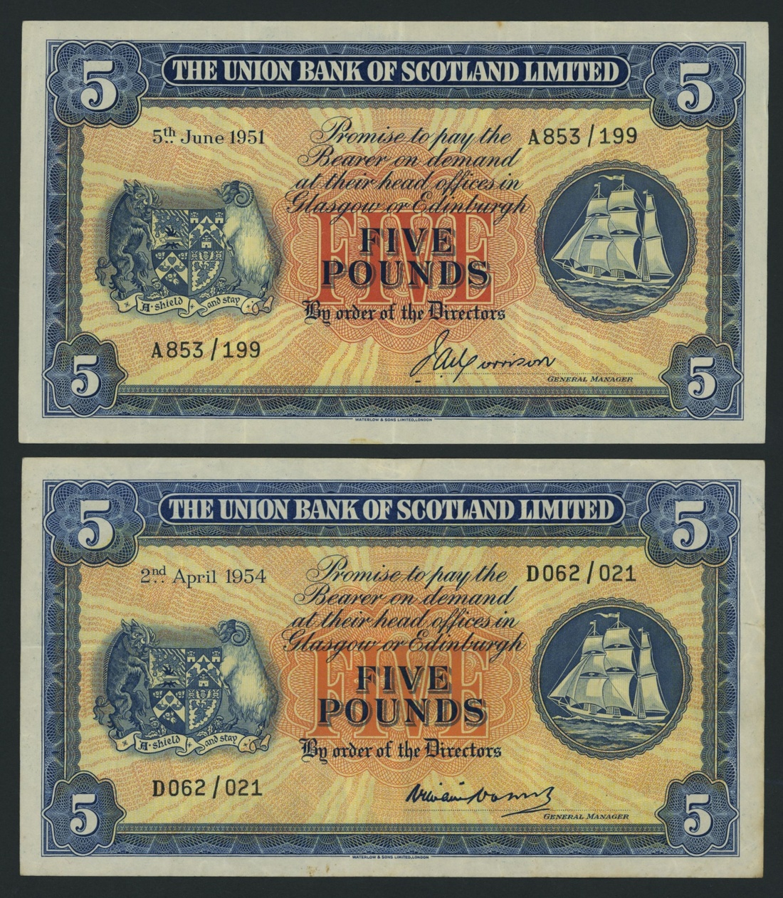 Union Bank of Scotland Ltd., [3 notes] £5, £20, Edinburgh,
