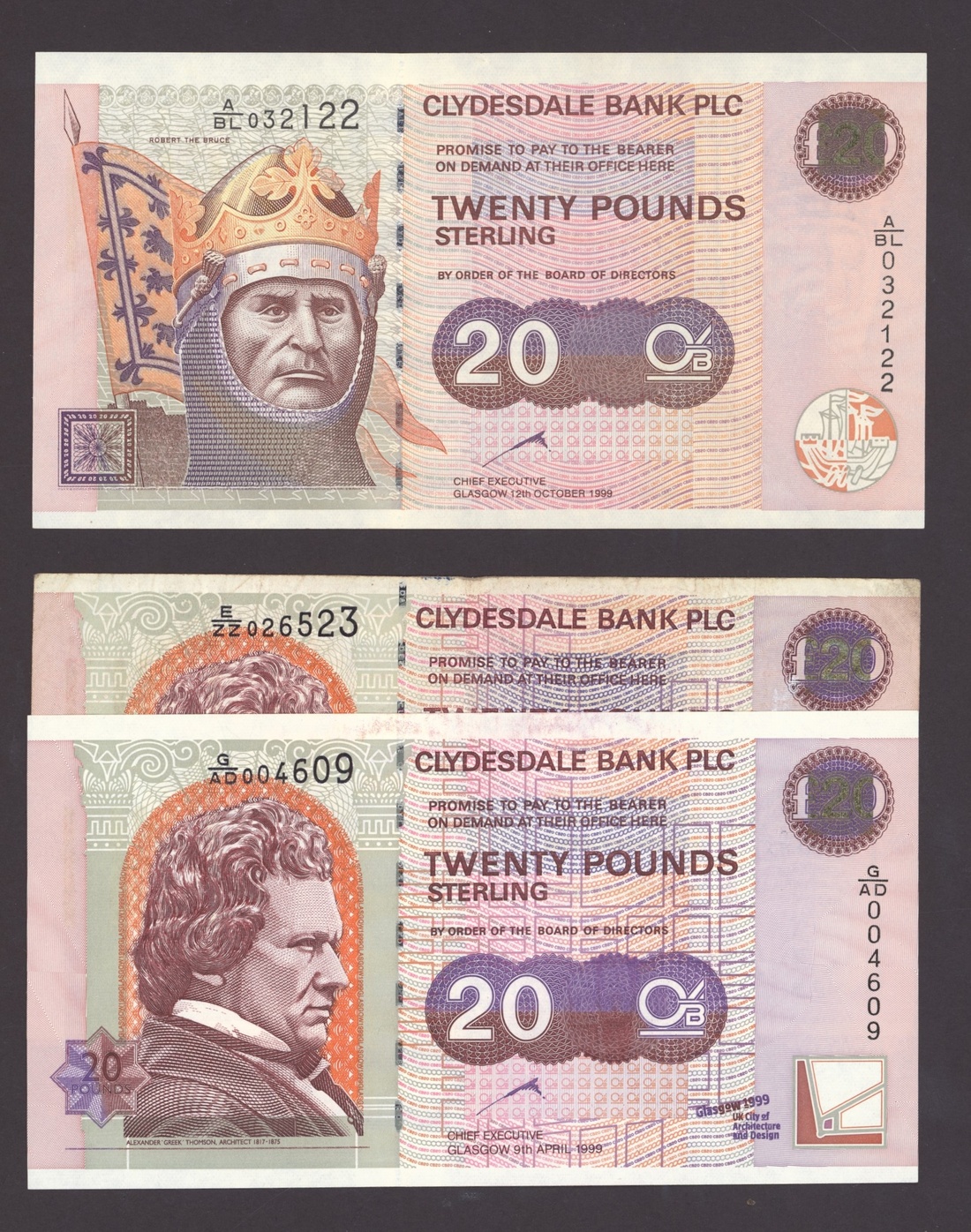Clydesdale Bank PLC, [3 notes] £20, Glasgow, 1999,