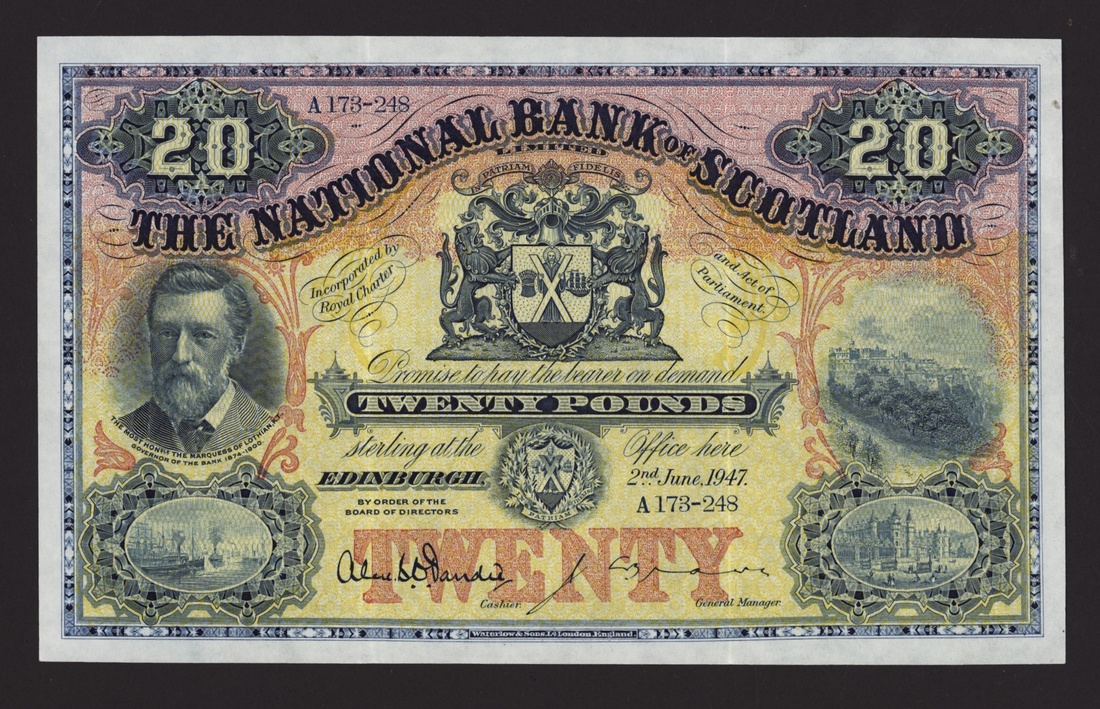 National Bank of Scotland, £20, Edinburgh, 2nd June 1947, serial number A173-248, (PMS NA 63), solid extremely fine