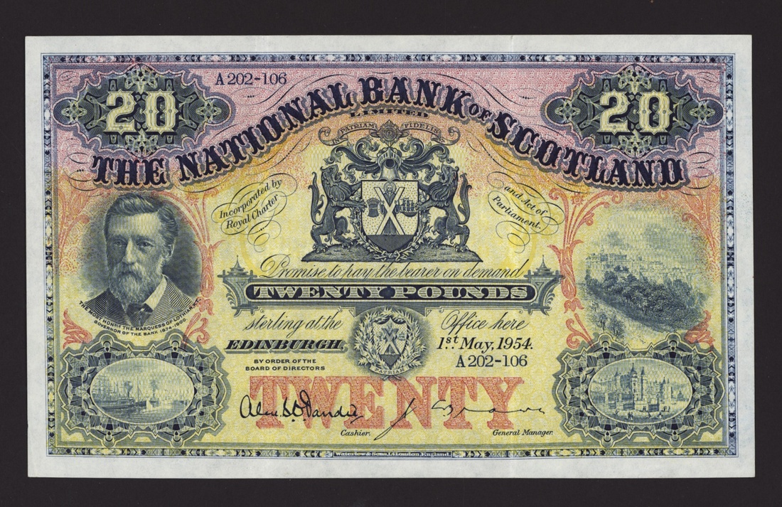 National Bank of Scotland, £20, Edinburgh, 1st May 1954, serial number A202-106, (PMS NA 63), solid extremely fine
