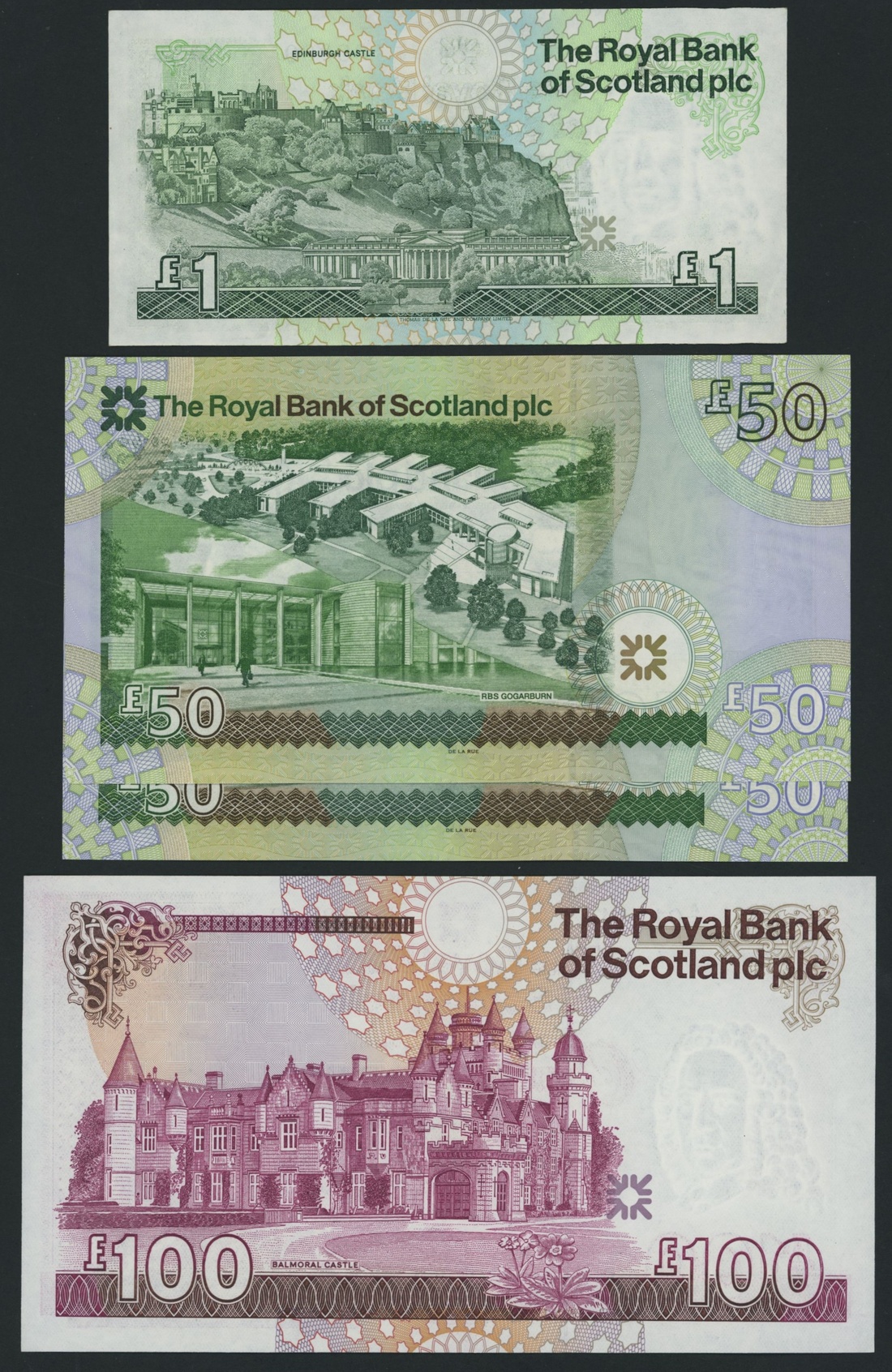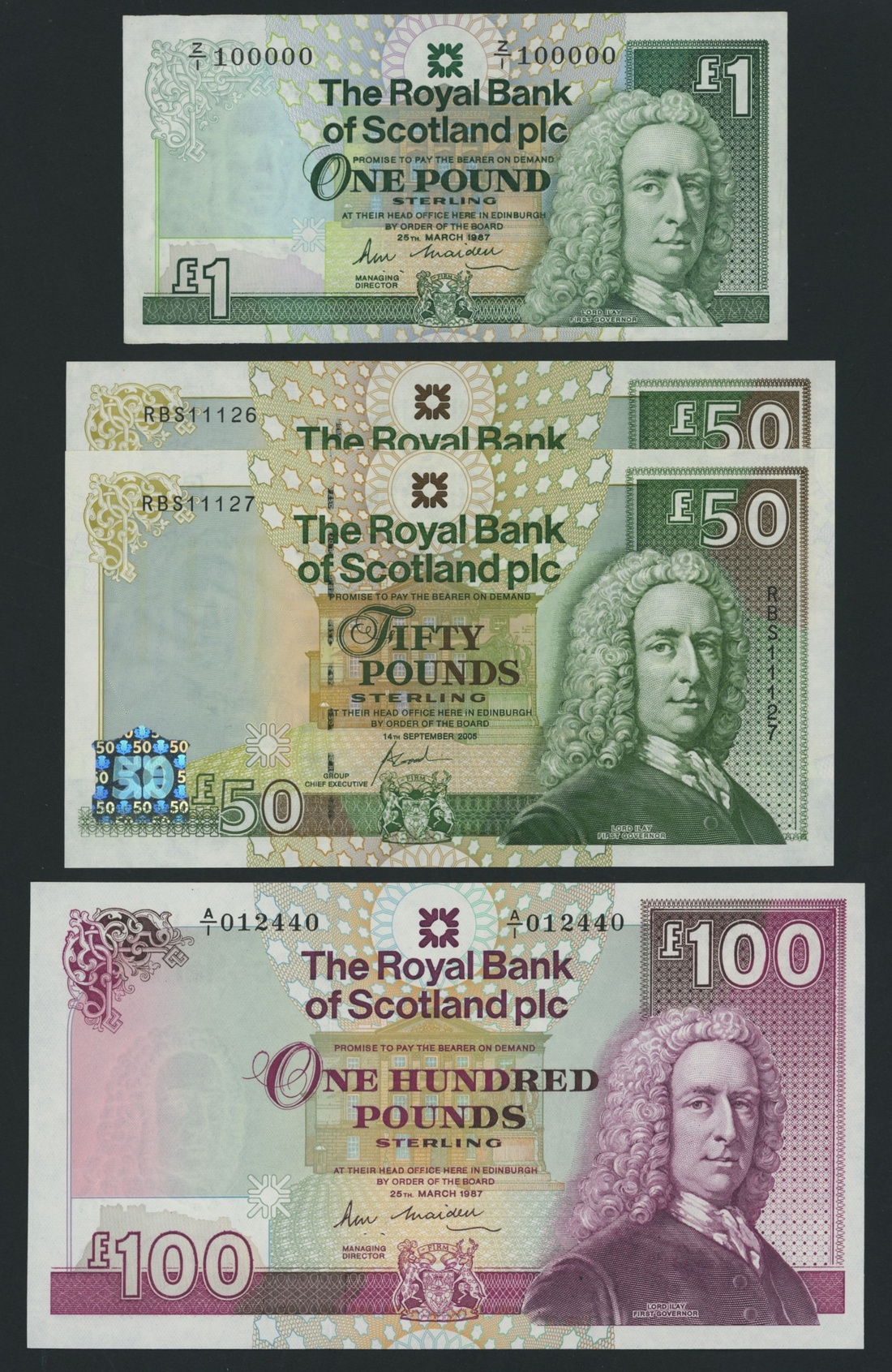 Royal Bank of Scotland, [4 notes] £1, £50, £100, Edinburgh, 1987-2005,