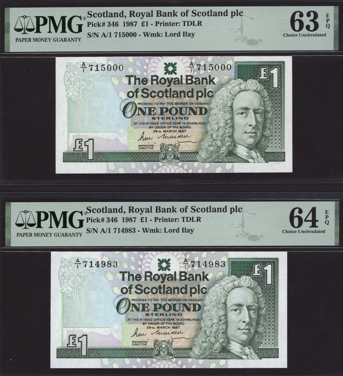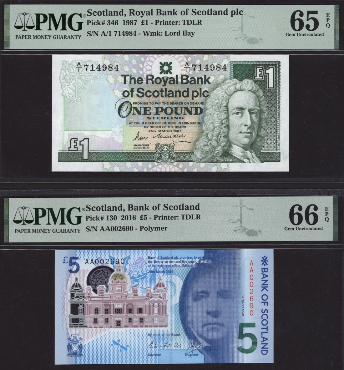 (x) Royal Bank of Scotland, Bank of Scotland, [5 notes] £1, £5, £10, Edinburgh, 1987-2016,