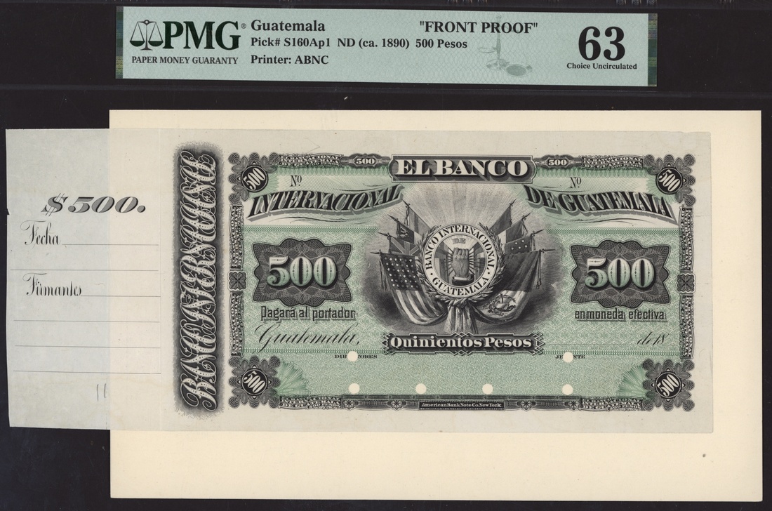 Banco Internacional de Guatemala, Group of 13 proofs, obverse proof 500 Pesos, ND (ca. 1890),