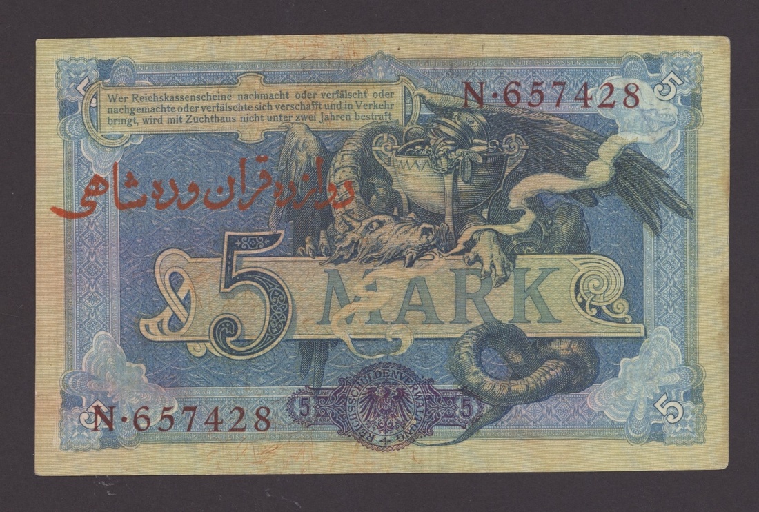 (x) German Military issues for Persia, 12 Kran 10 Shahi on 5 Mark, 30th April 1904 (1916), serial number N.657428,