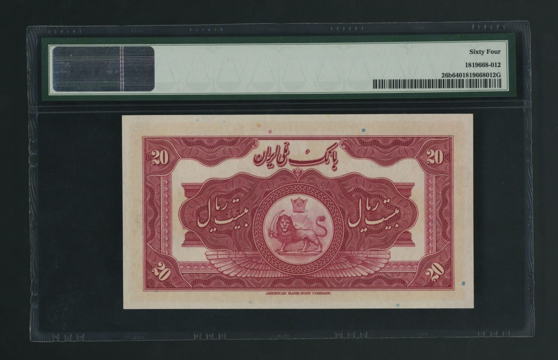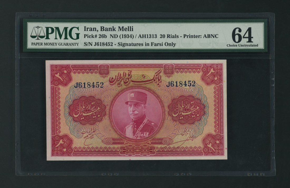(x) Bank Melli, Iran, 20 Rials, ND (1934), serial number J618452, signatures in Farsi only
