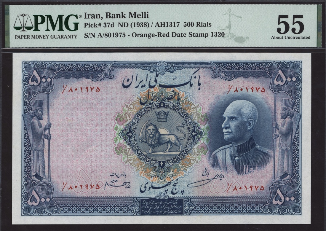 Bank Melli, Iran, 500 Rials, ND (1938), serial number A/801975, (Pick 37d), in PMG holder 55 About Uncirculated