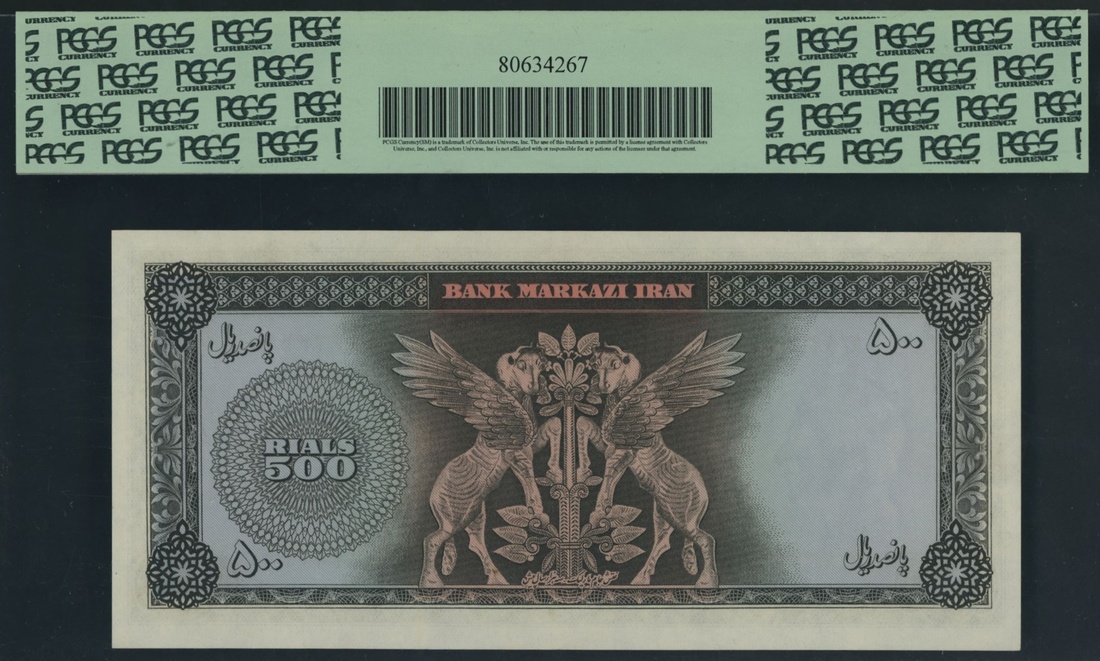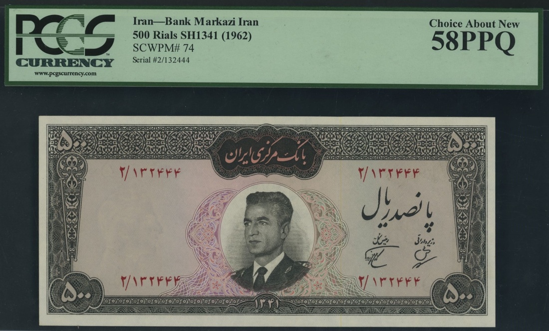 (x) Bank Markazi, Iran, 500 Rials, ND (1962), serial number 2/132444, (Pick 74, BNB 206), in PSGS holder 58 PPQ Choice About New