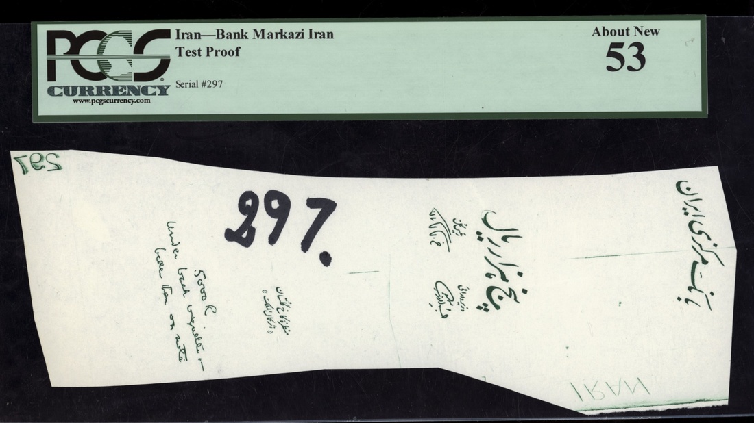 (x) Bank Markazi, Iran, test proof, serial number 297, in PCGS holder 53 About New