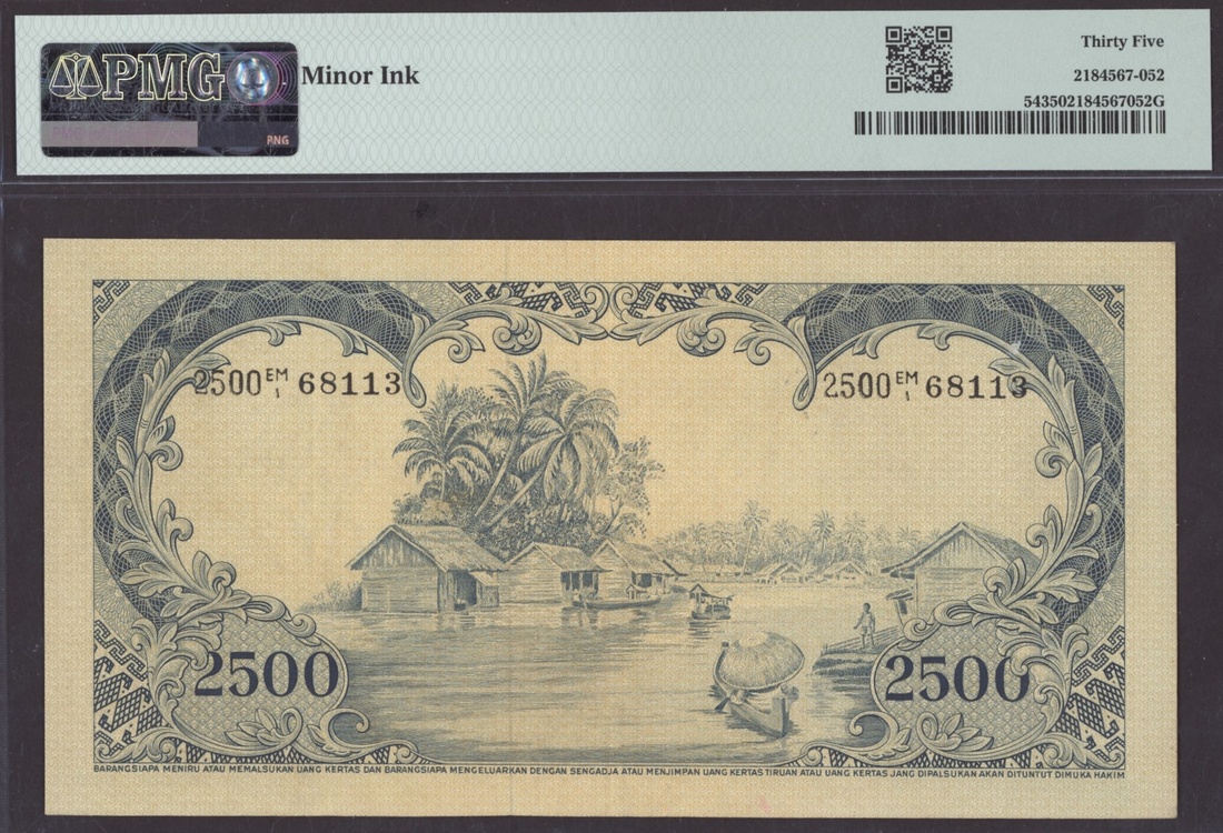 (x) Bank Indonesia, 2500 Rupiah, ND (1957), serial number EM/1 68113, (Pick 54, BNB 515), in PMG holder 35 Choice Very Fine, minor ink