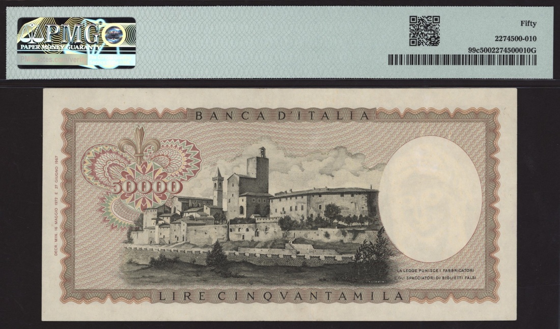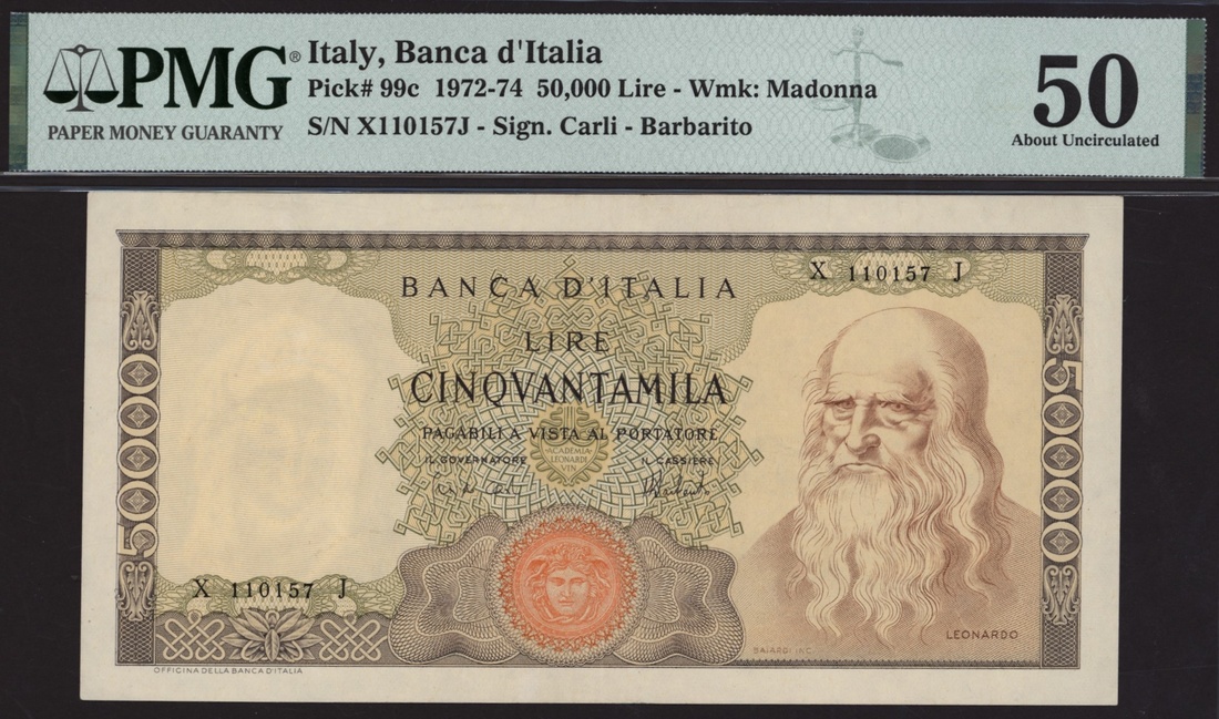 (x) Banca d'Italia, Italy, 50000 Lire, 1972-74, serial number X110157J, (Pick 99c, BNB 451), in PMG holder 50 about Uncirculated
