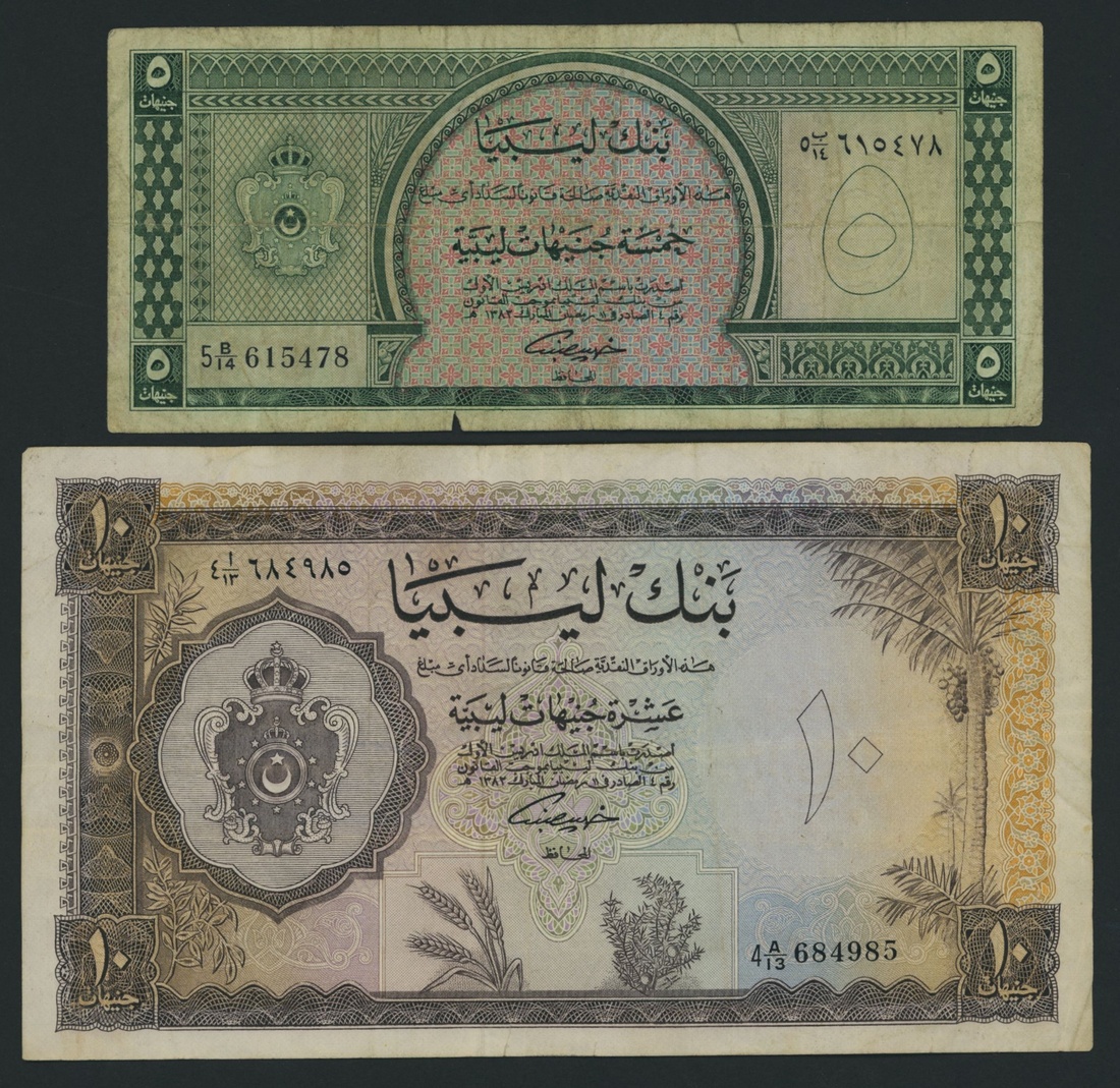 Bank of Libya, [5 notes] 1/4, 1/2, 1, 5, 10 Libyan Pounds, 5th February 1963,