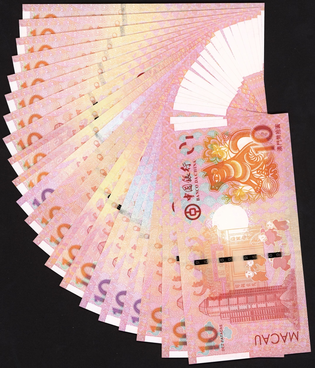 (x) Macau, a group of the lunar new year commemorative issues 10 Patacas, 2016-, including BNU and Bank of China 'Monkey zodiac' with matching last 5 digits (4 pairs), BNU (5), Bank of China (8) including dragon, rooster and dog,