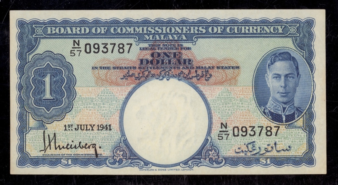 (x) Commissioners of Currency, Malaya, $1, 1st July 1941, serial number N/57 093787, (Pick 11, BNB 112), good extremely fine