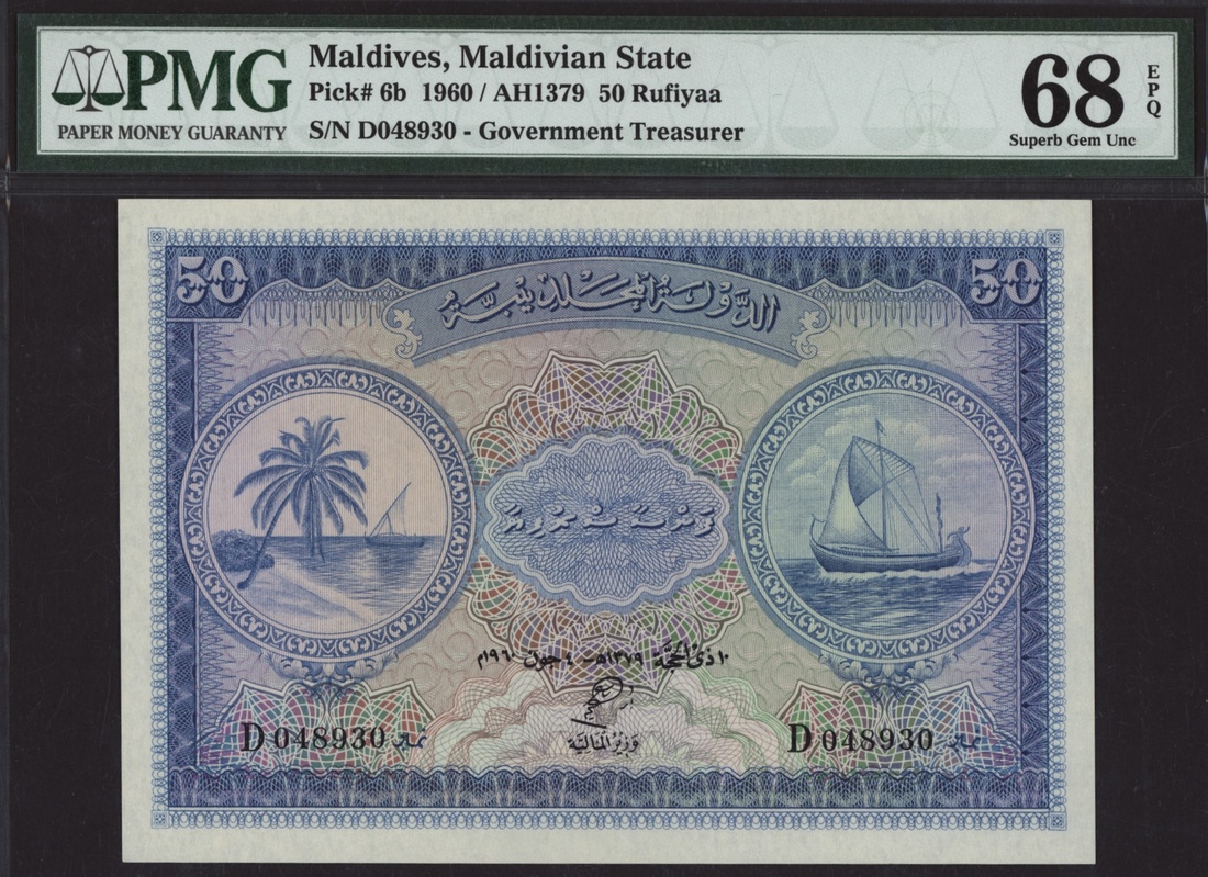 (x) Government of the Maldives, [2 notes] 10, 50 Rufiyaa, 1379 (1960),