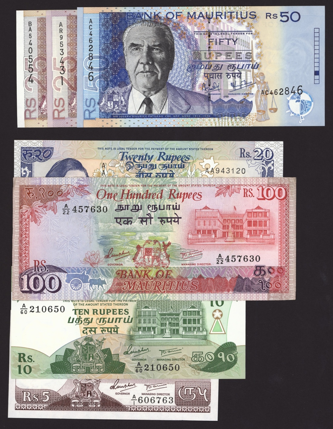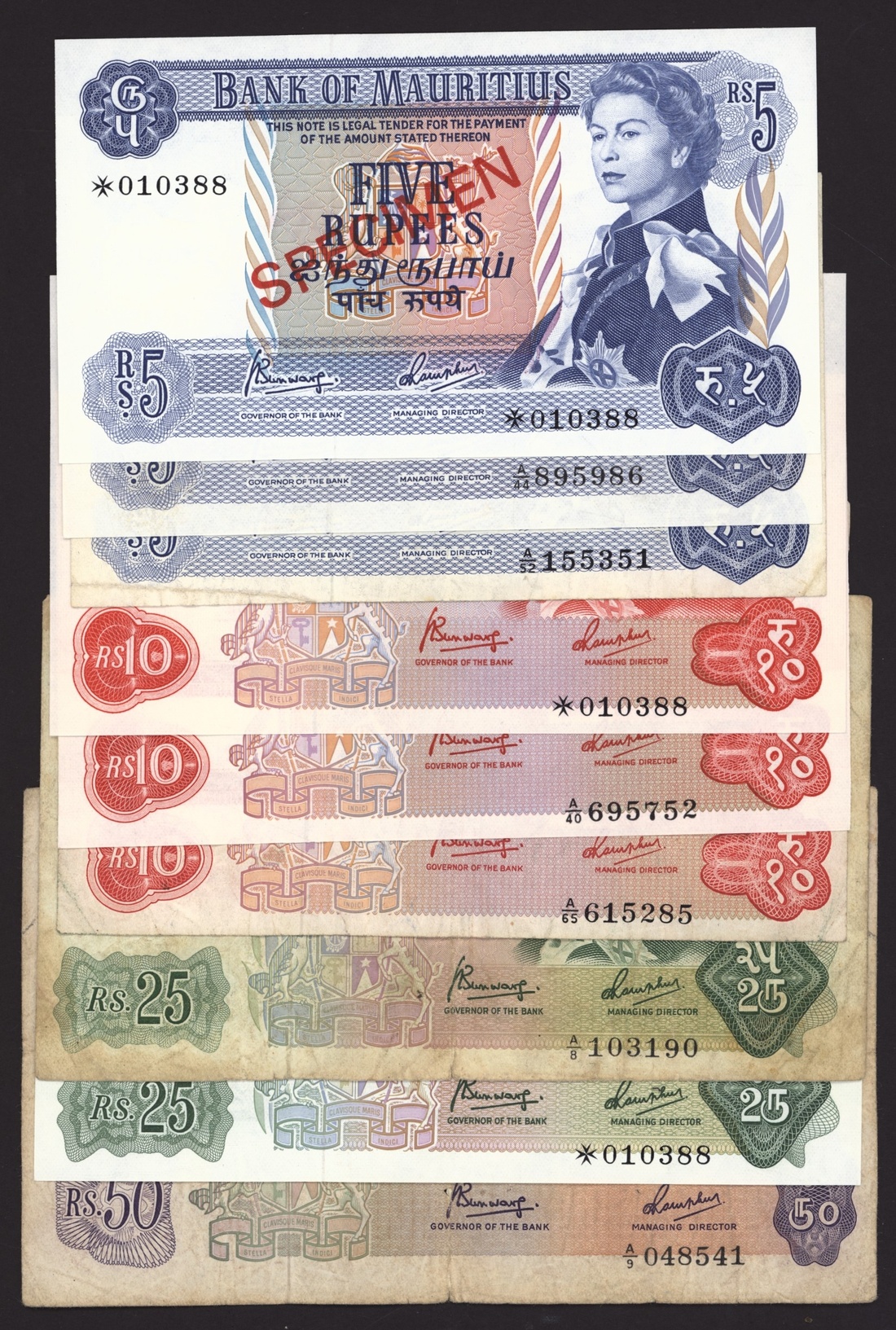 Group of Mauritius banknotes, [19 notes] 1839-1999,