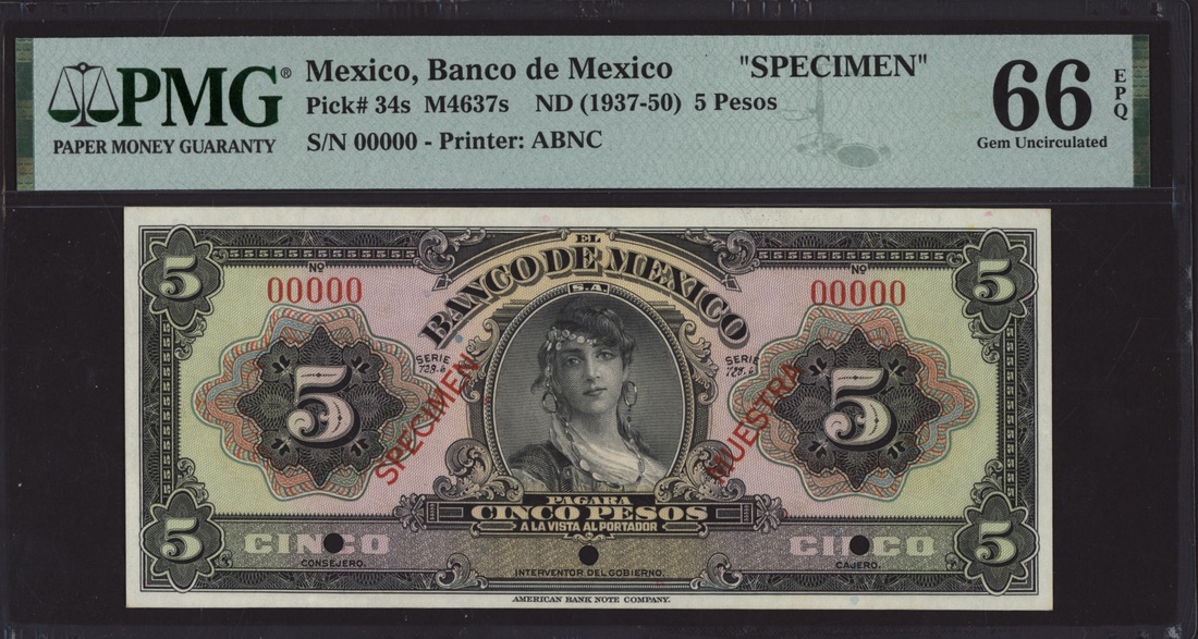 specimen 5 Pesos, ND (1936-43), specimen number 662